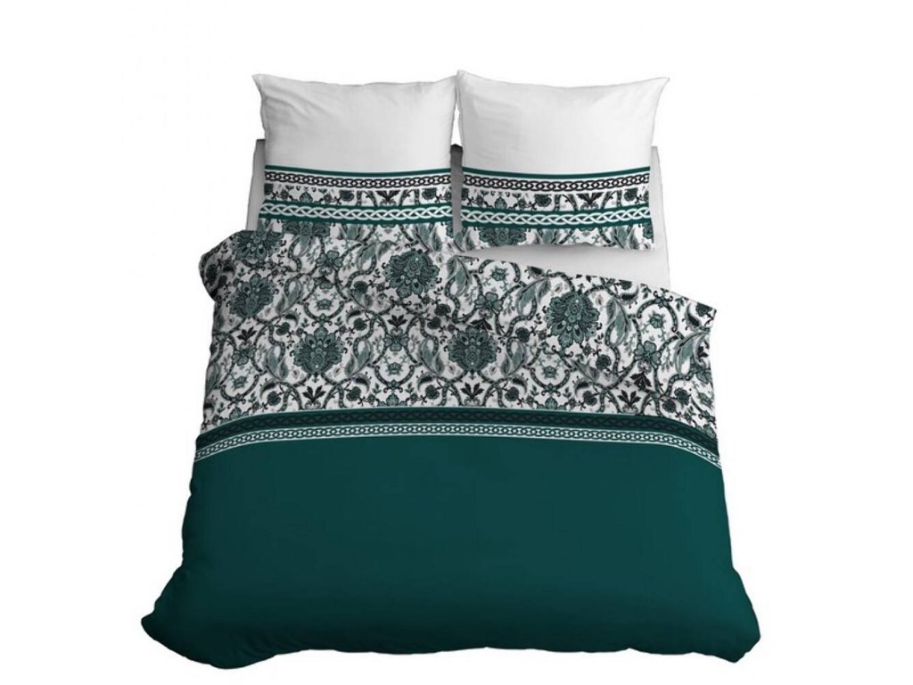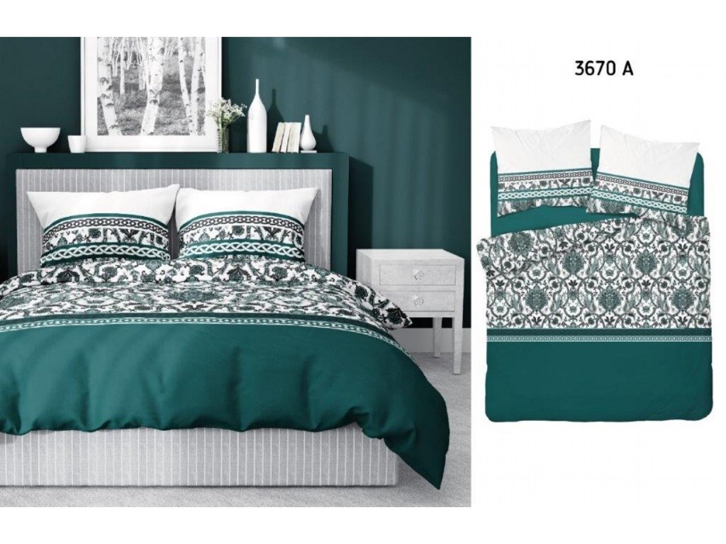 Bavlněné saténové povlečení mořská zelená bílá květiny ozdoby rozměr 140×200 vzor 3670 A Detex