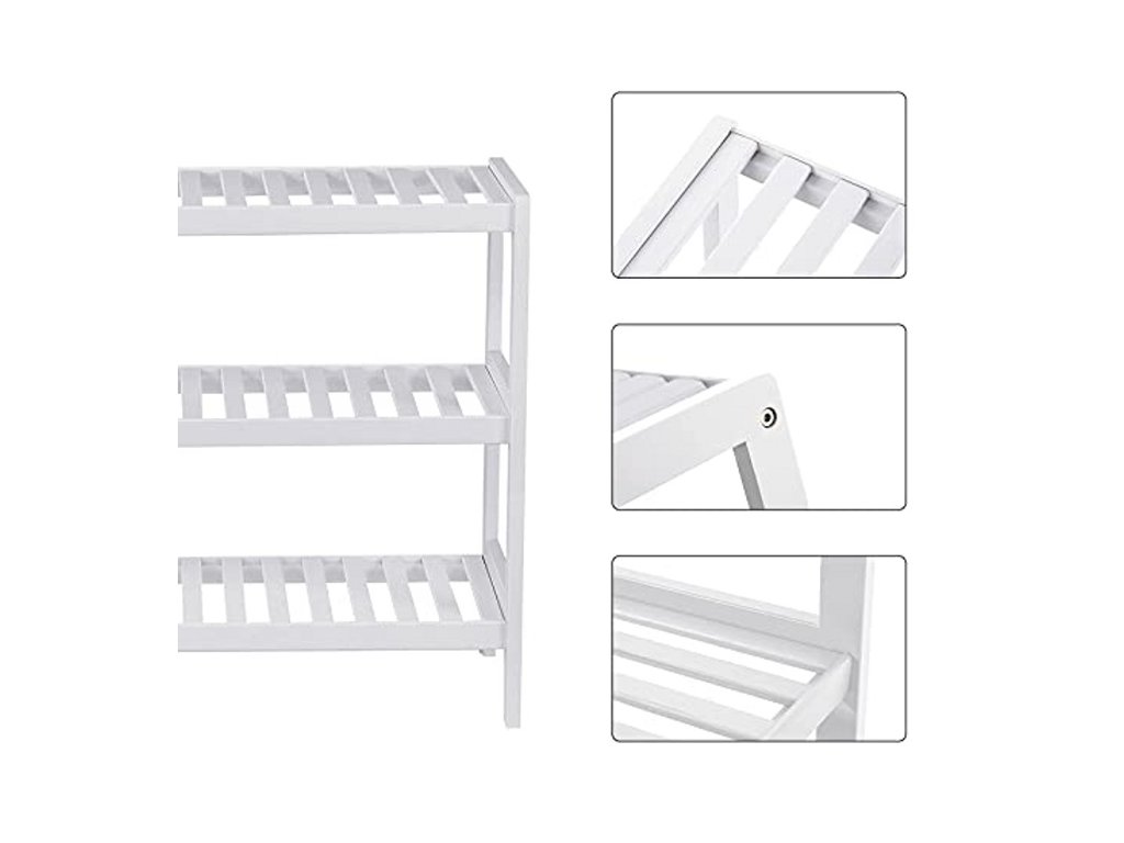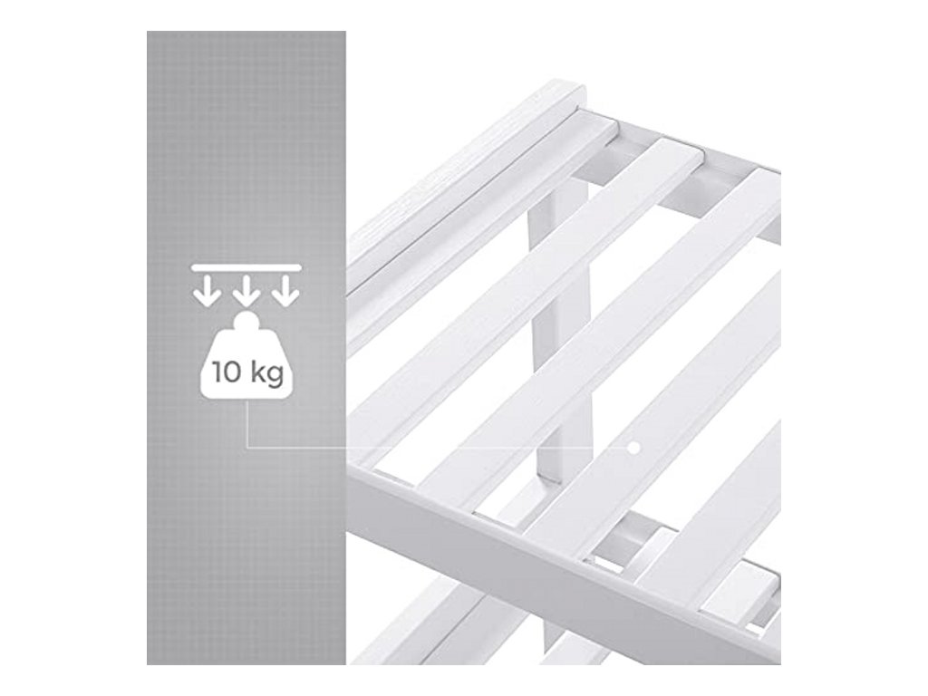 Stabilní konstrukce s lamelovými policemi umožňuje dobré proudění vzduchu, což přispívá k rychlejšímu schnutí obuvi. Otevřený design zajišťuje snadný přístup ke všem párům bot. Jednoduché bílé provedení působí čistě a univerzálně, takže se snadno kombinuje s ostatním nábytkem.