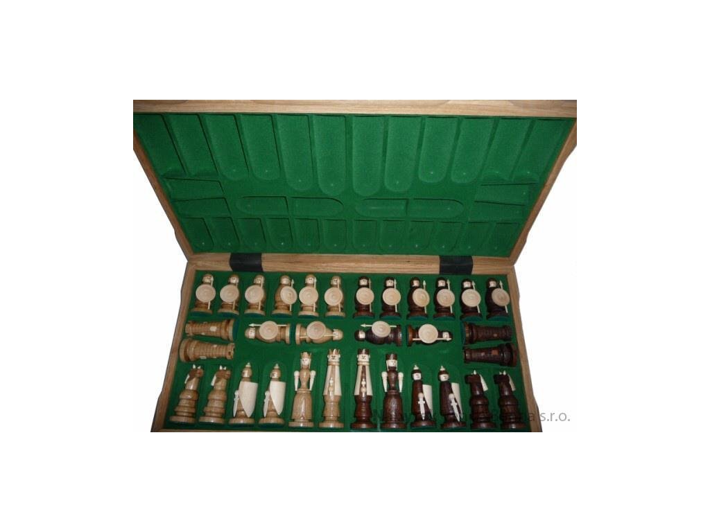 - Figurky jsou pěkně složeny do dřevěné krabice, která je používaná jako šachovnice.