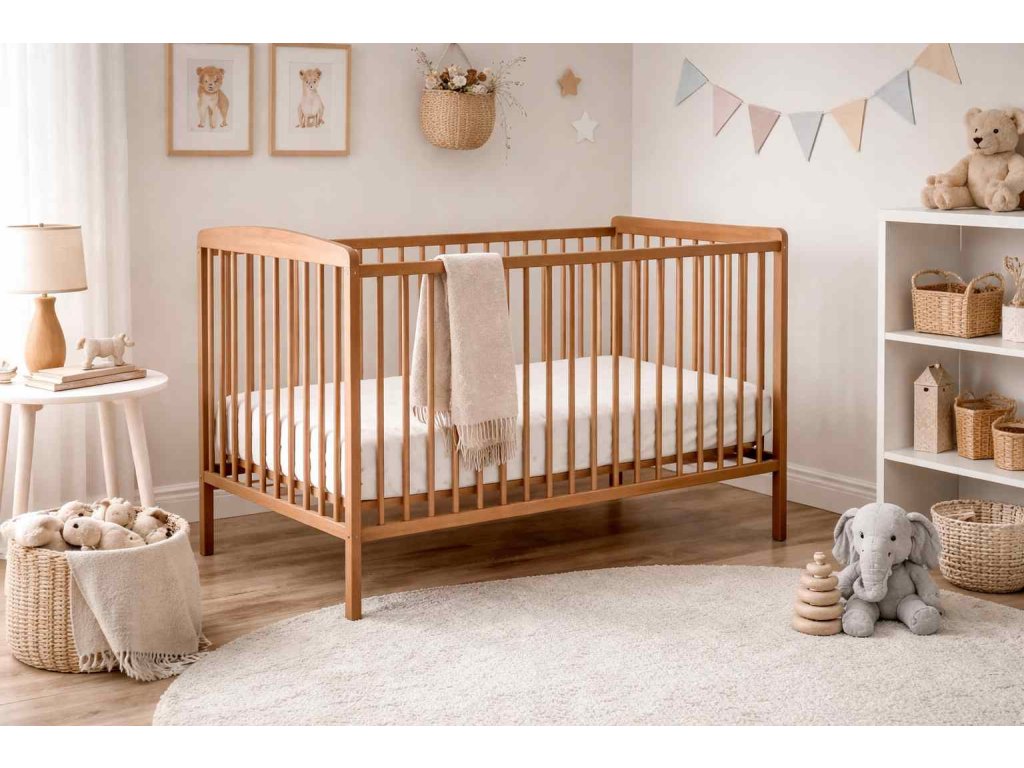 Díky přírodnímu odstínu bukového dřeva se postýlka hodí do moderních i klasických dětských pokojů a snadno ji sladíte s dalším nábytkem.
