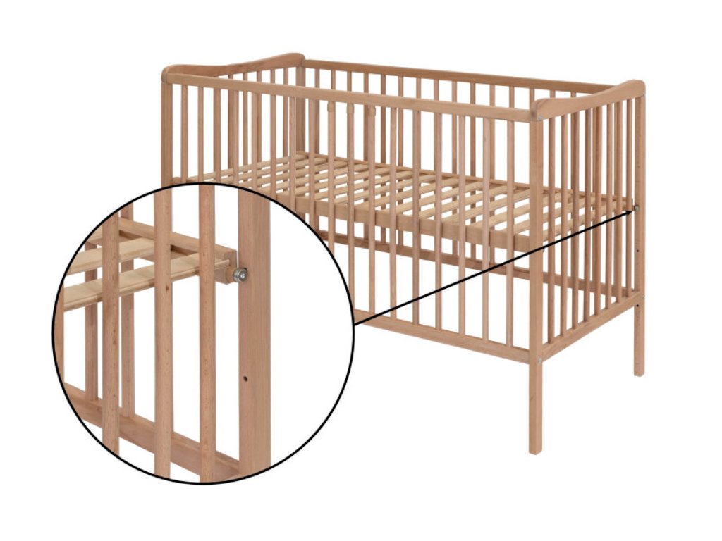 Postýlka je vyrobena z přírodního bukového dřeva, které je známé svou vysokou pevností, dlouhou životností a odolností. Klasické dřevěné příčky zajišťují správnou cirkulaci vzduchu a zároveň chrání dítě během spánku.