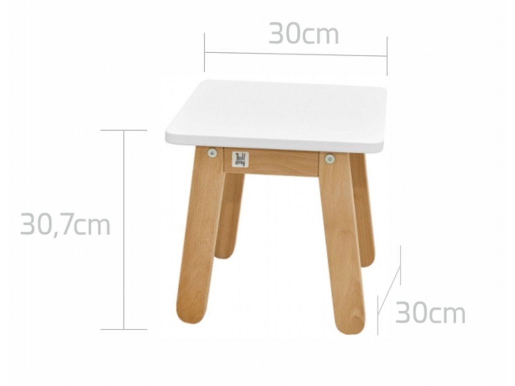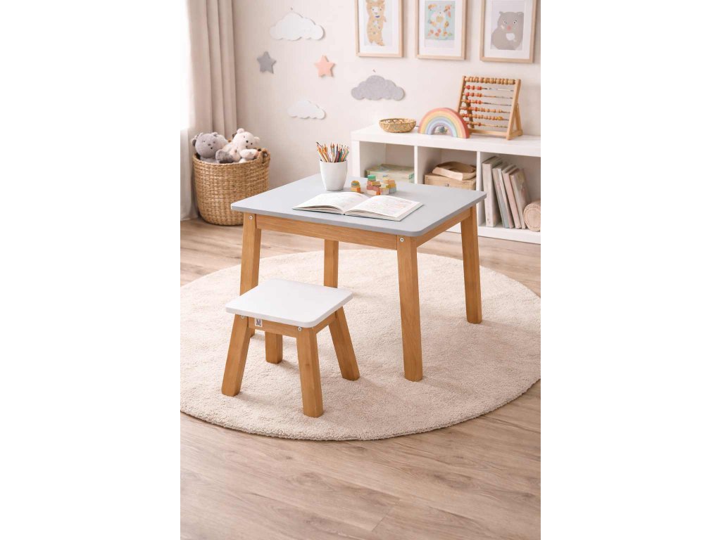 Praktický a nadčasový dětský dřevěný jídelní set, který se skládá z pevného stolu a pohodlné stoličky. Kombinace přírodního masivního dřeva a bílé pracovní plochy působí moderně a snadno zapadne do dětského pokoje, herny i obývacího prostoru.