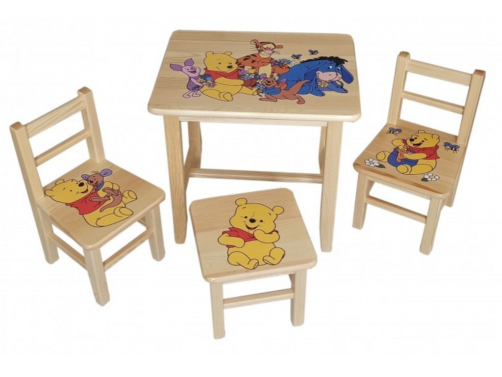 dětský stoleček a židličky z borovice Medvídek Pú NR3 1S+2K+1T mixdre