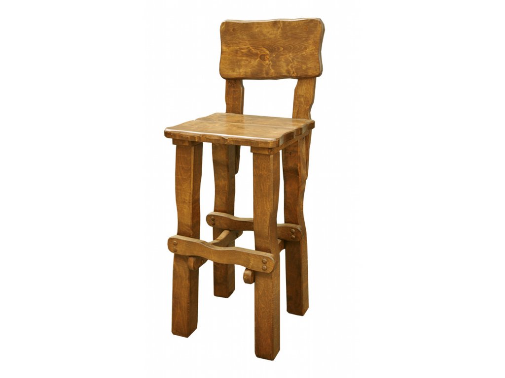 Dřevěná barová stolička MAX z masivu (hoker) Masiv | rustikální styl | pevná konstrukce