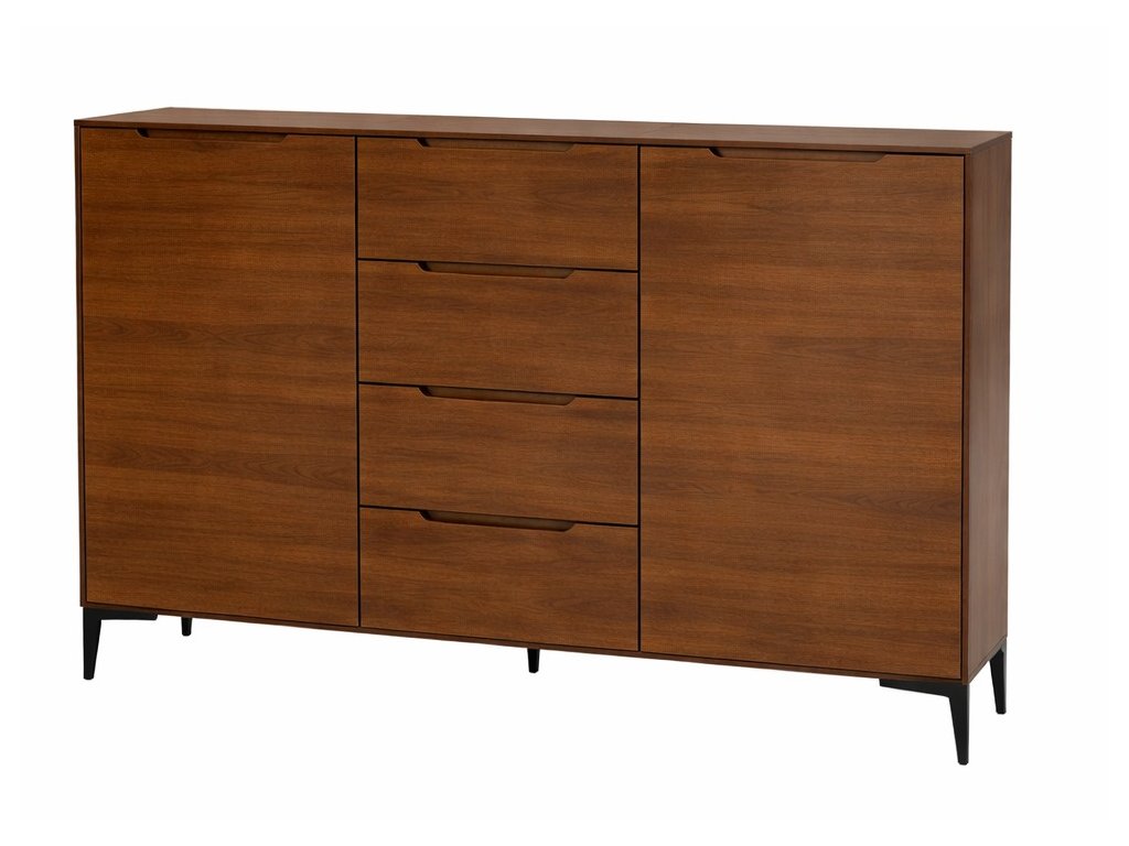 Prostorná komoda z masivního buku v moderním designu na vysokých černých nožkách. Kombinace dvířek a zásuvek nabízí maximální praktičnost i elegantní vzhled.