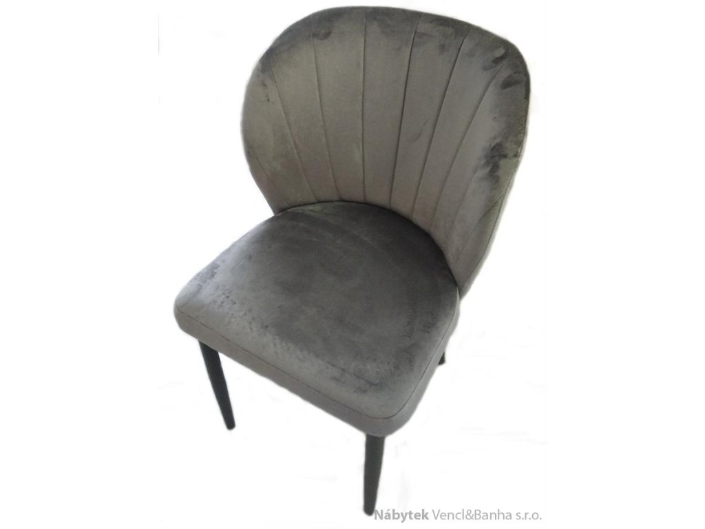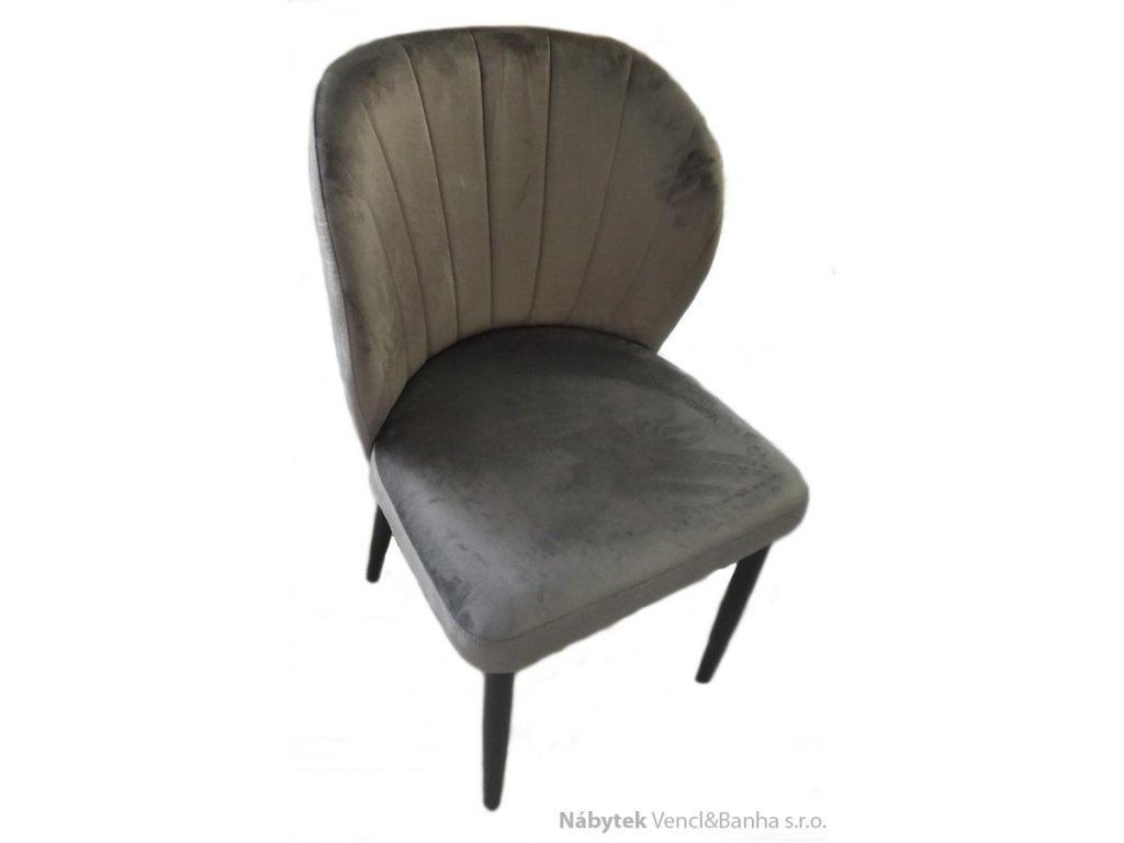 Dřevěná čalouněná jídelní židle SHELLY, samet šedý, černé nohy skladem