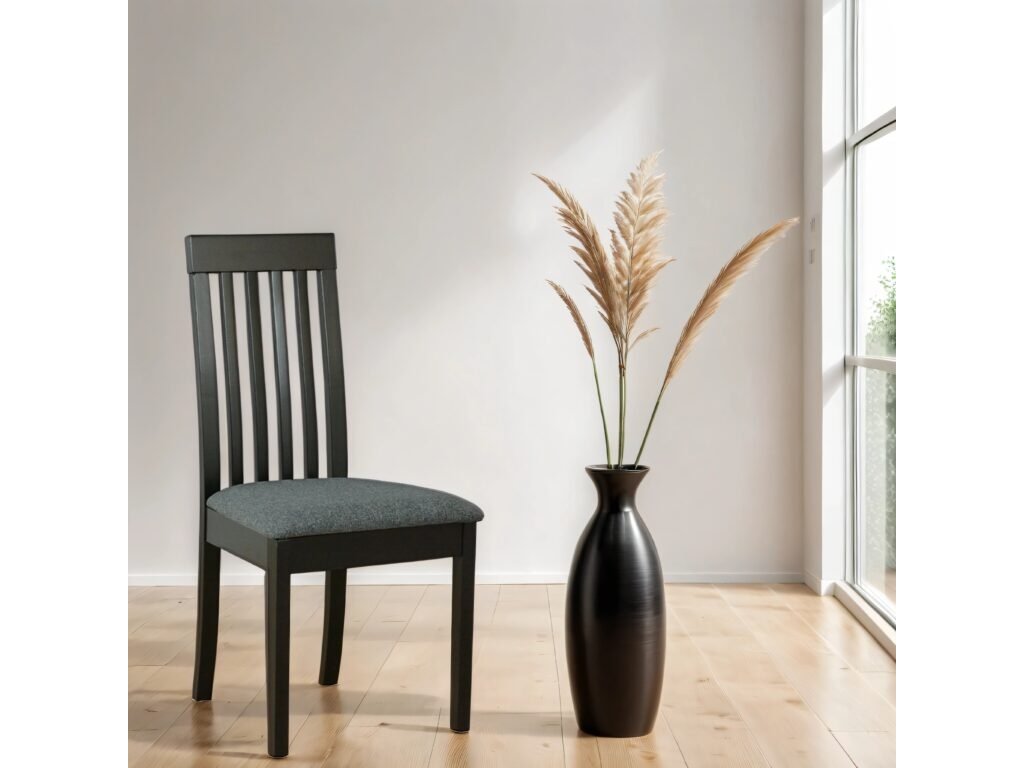 Jídelní židle Roma 9 je vyrobena z kvalitního masivního dřeva, které zajišťuje dlouhou životnost, stabilitu a pevnost při každodenním používání. Charakteristickým prvkem je vysoké opěradlo s vertikálními příčkami, které dodává židli lehkost a zároveň poskytuje dobrou oporu zad.
