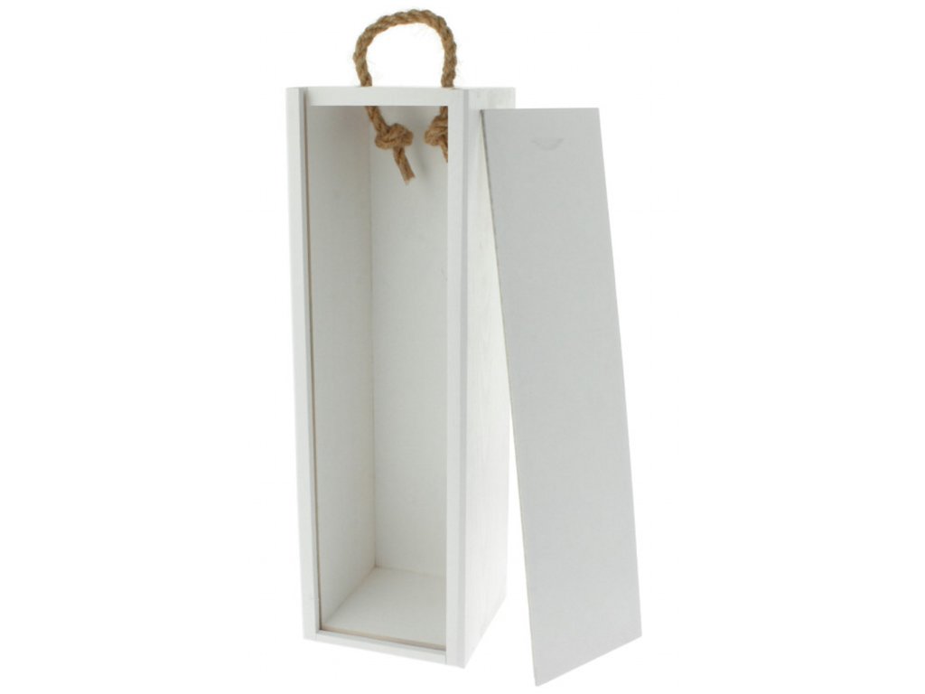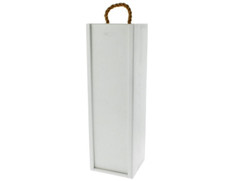 Dřevěná dárková krabice na 1 víno – bílá s držákem