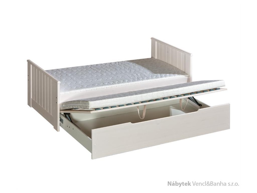 Rozkládací dřevěná postel Tomi DOLM s úložným prostorem – borovice, 90 x 200 cm