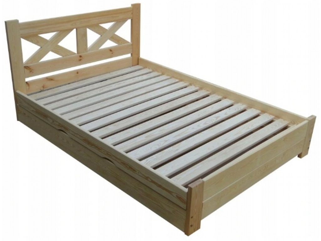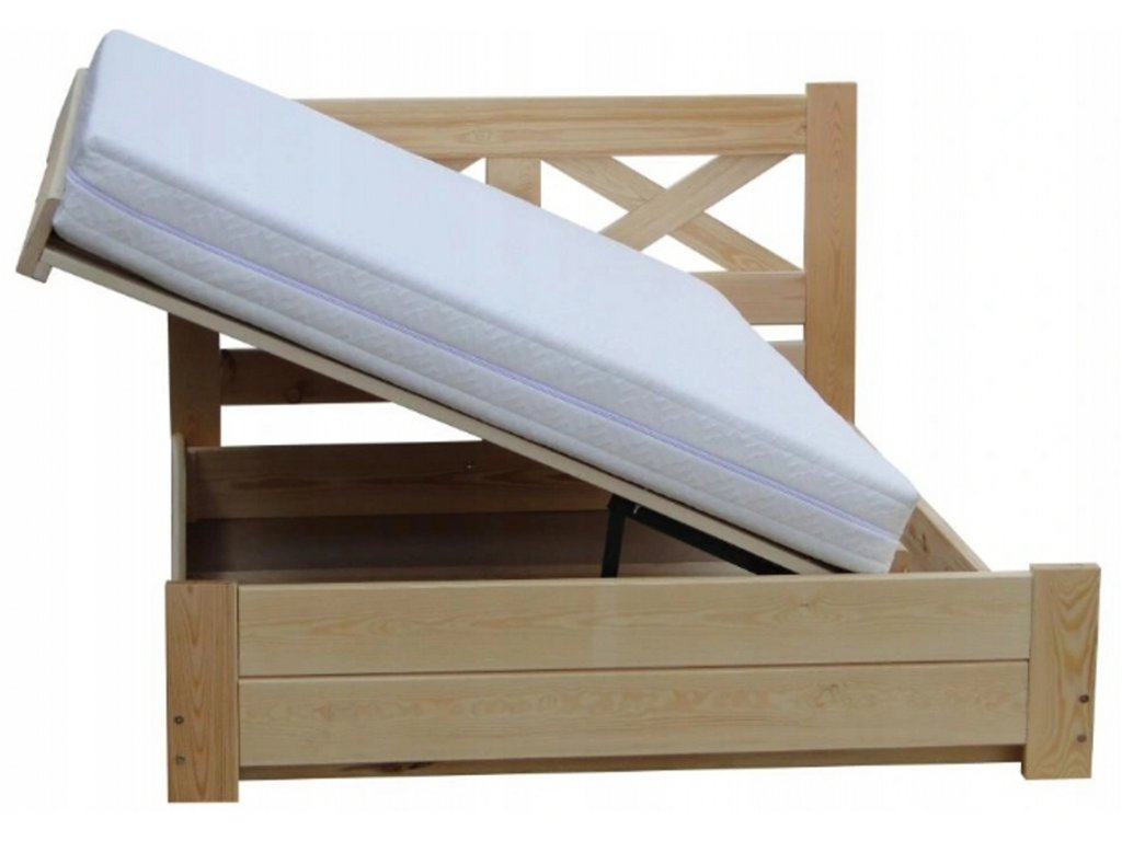 Pěkná a praktická dřevěná dvojlůžková postel s úložným prostorem Imperia chalup, stabilní a pěkná na pohled. Postel je vyrobena z masivního jehličnatého dřeva borovice o tloušťce 25-30 mm. Povrchová úprava postele s úložným prostorem, je lakovaná bezbarvým vodou ředitelným lakem. Je možné moření do jiných odstínu víz níže. Postel z masivu má praktický úložný prostor. Dolní část úložného prostoru u postele z masivu je vyrobena ze sololitové desky. Vrchní část úložného prostoru u borovicové postele je pevný rošt, který díky vyklápěcímu mechanizmu lze lehce otvírat. Rošt u postele z masivu je zhotoven z pevných borovicových desek. Cena postele uvedena bez matrace. Matrace je možné vybrat v menu v sekci matrace. Rozměr postele pod matraci je 140x200 cm. Venkovní rozměr postele 146x207 cm, celková výška postele 90 cm, hloubka úložného prostoru cca 20 cm, výška od podlahy k včetně roštu cca 23 cm. Postel s úložným prostorem lze zhotovit v různých šířkách. K posteli menu dokoupit noční stolky, komody a td. Doprava po cele ČR.