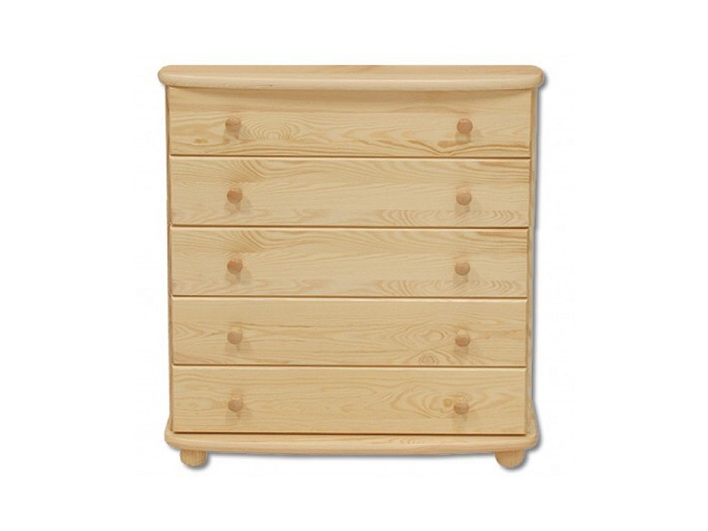 Praktická komoda z masivního borového dřeva je ideální volbou do ložnice, chodby i dětského pokoje. Pět prostorných zásuvek poskytuje dostatek místa pro uložení oblečení, prádla nebo jiných osobních věcí. Komoda je vyrobena z kvalitního masivu borovice, přičemž vnitřní části zásuvek jsou zhotoveny z kombinace dřeva, DTD a sololitové desky, což zajišťuje pevnost a dlouhou životnost. Zadní stěna je rovněž uzavřená sololitem. Díky kulatým nožičkám je komoda stabilní a zároveň působí lehce a vzdušně. Povrch je ošetřen bezbarvým vodou ředitelným lakem, který zachovává přirozený vzhled borovicového dřeva a zároveň jej chrání.