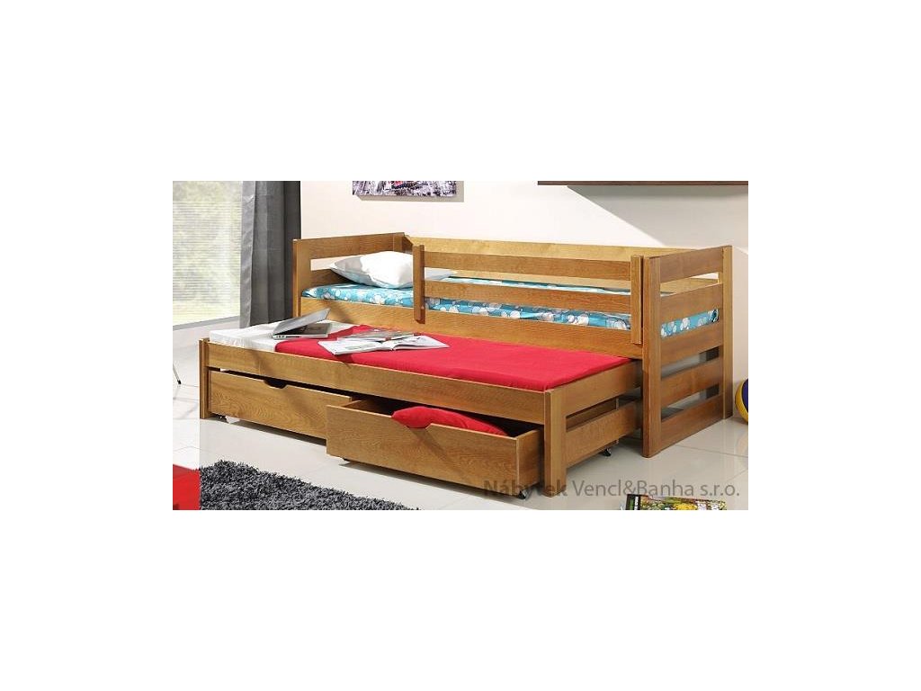 Dřevěná rozkládací dvojpostel z masivního dřeva borovice Kubus Meblano