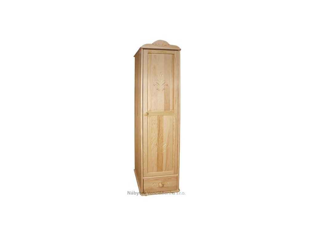 Dřevěná šatní skříň jednodveřová vyřezávaná z masivního dřeva borovice z kolekce Drewfilip 3
