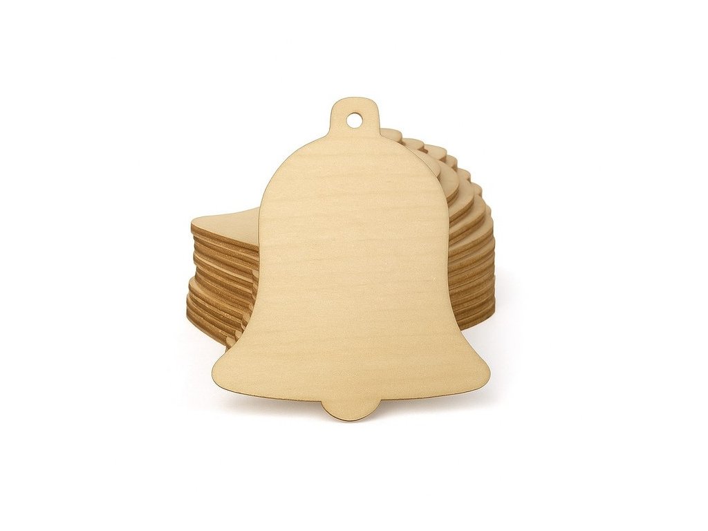 Dřevěné ozdoby zvonek – sada 10 kusů pro kreativní tvorbu