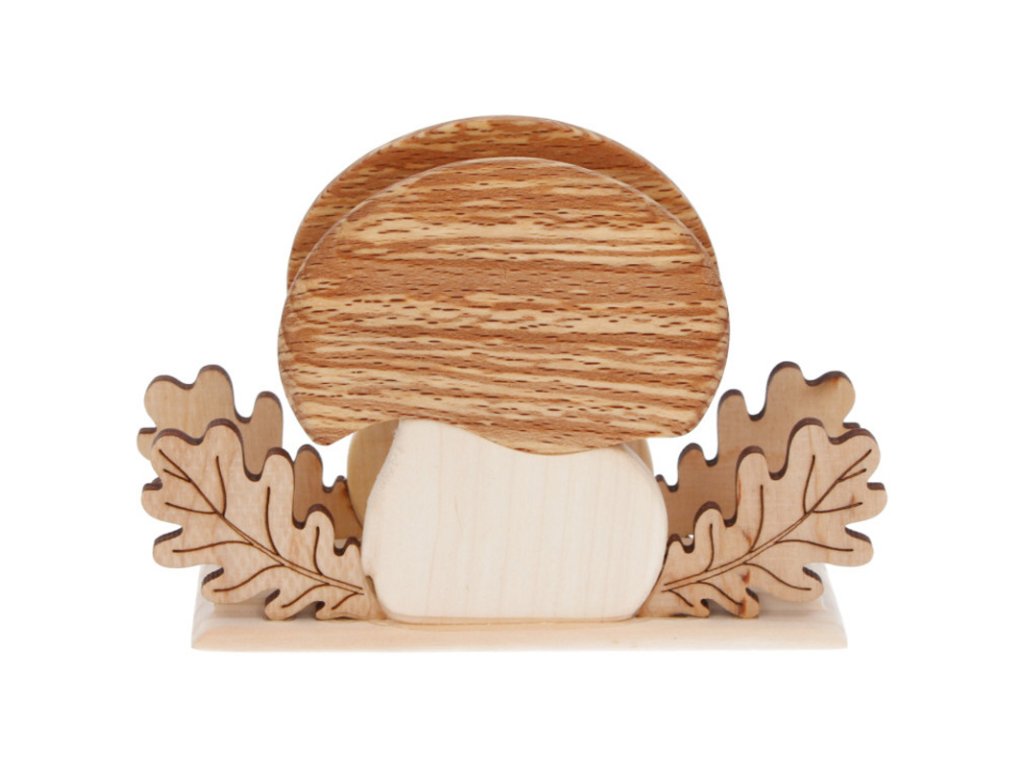 Dřevěný držák na ubrousky – motiv houby
