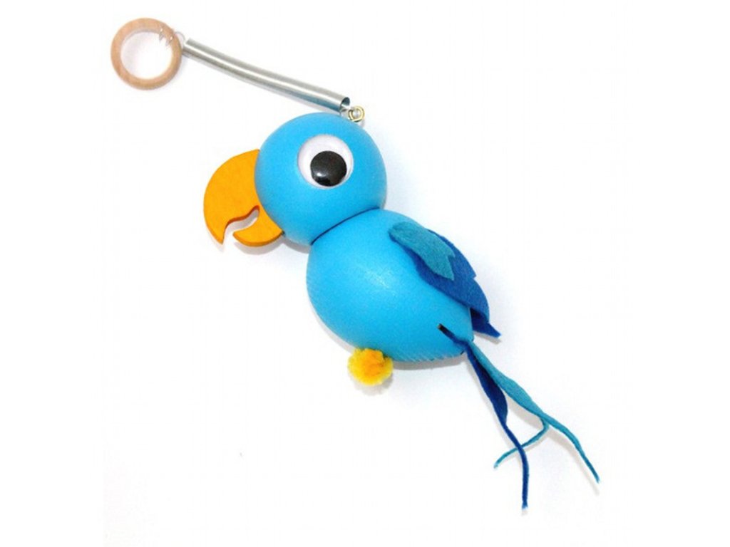 Papoušek je vyroben z kvalitního dřeva a doplněn výraznými barvami, které mu dodávají radostný a živý vzhled. Zavěšení je řešeno kovovou pružinou a kroužkem, takže dekoraci snadno umístíte na háček, do dětského pokoje, herny, na terasu nebo do pergoly.