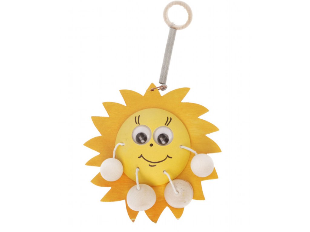 Dřevěný přívěsek sluníčko je hravá a milá dekorace, která zaujme svým veselým výrazem a jemnými pohyblivými detaily. Sluníčko je vyrobené z lehkého dřeva a doplněné o dřevěné korálky na provázcích, které se při pohybu jemně hýbou a dodávají přívěsku živost.