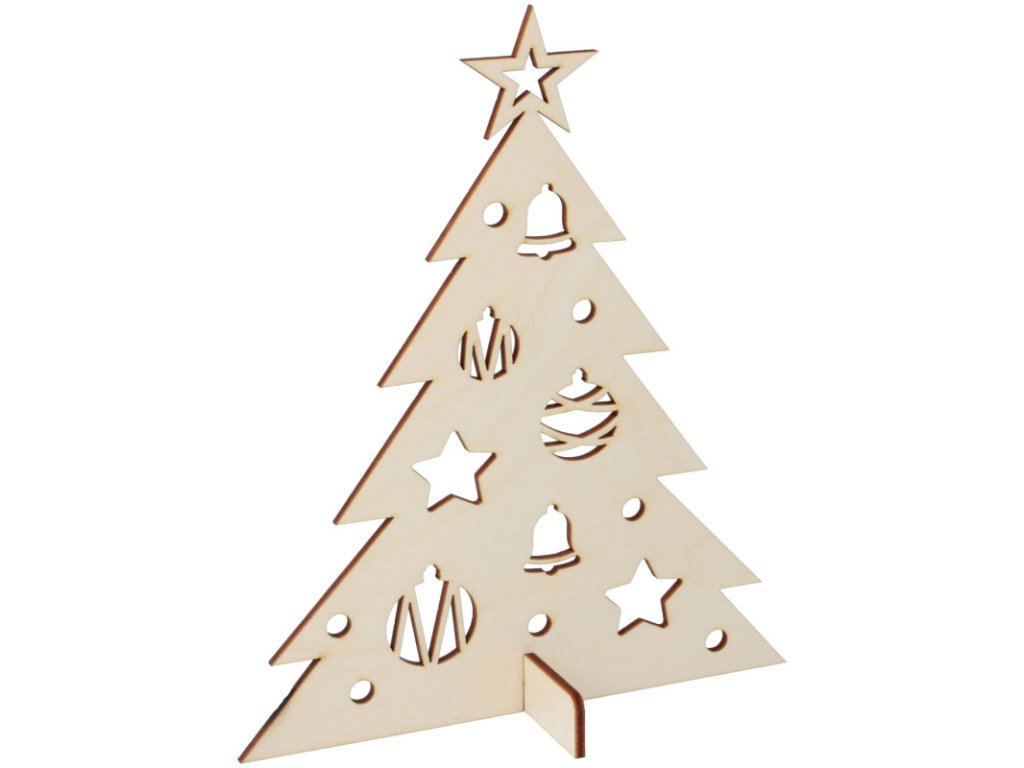 Výřezy propouštějí světlo, takže stromek krásně vynikne v kombinaci s LED světýlky nebo svíčkami v okolí. Díky přírodnímu provedení je vhodný také jako kreativní polotovar – lze jej malovat, zdobit technikou decoupage, patinovat, lakovat nebo doplnit třpytkami a dalšími dekoracemi.