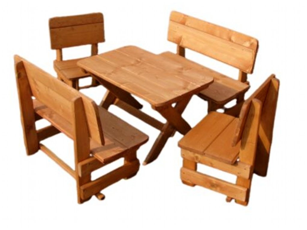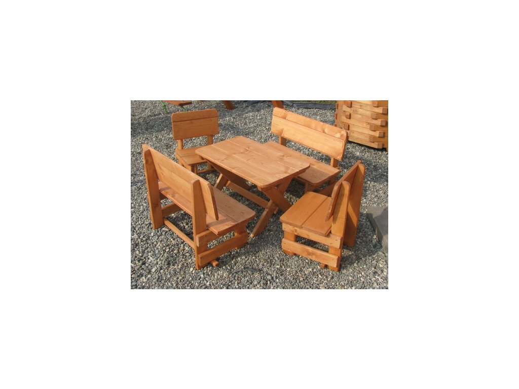 Dřevěný zahradní dětský nábytek – set 1+2+2 (stůl + 2 lavice + 2 židle)