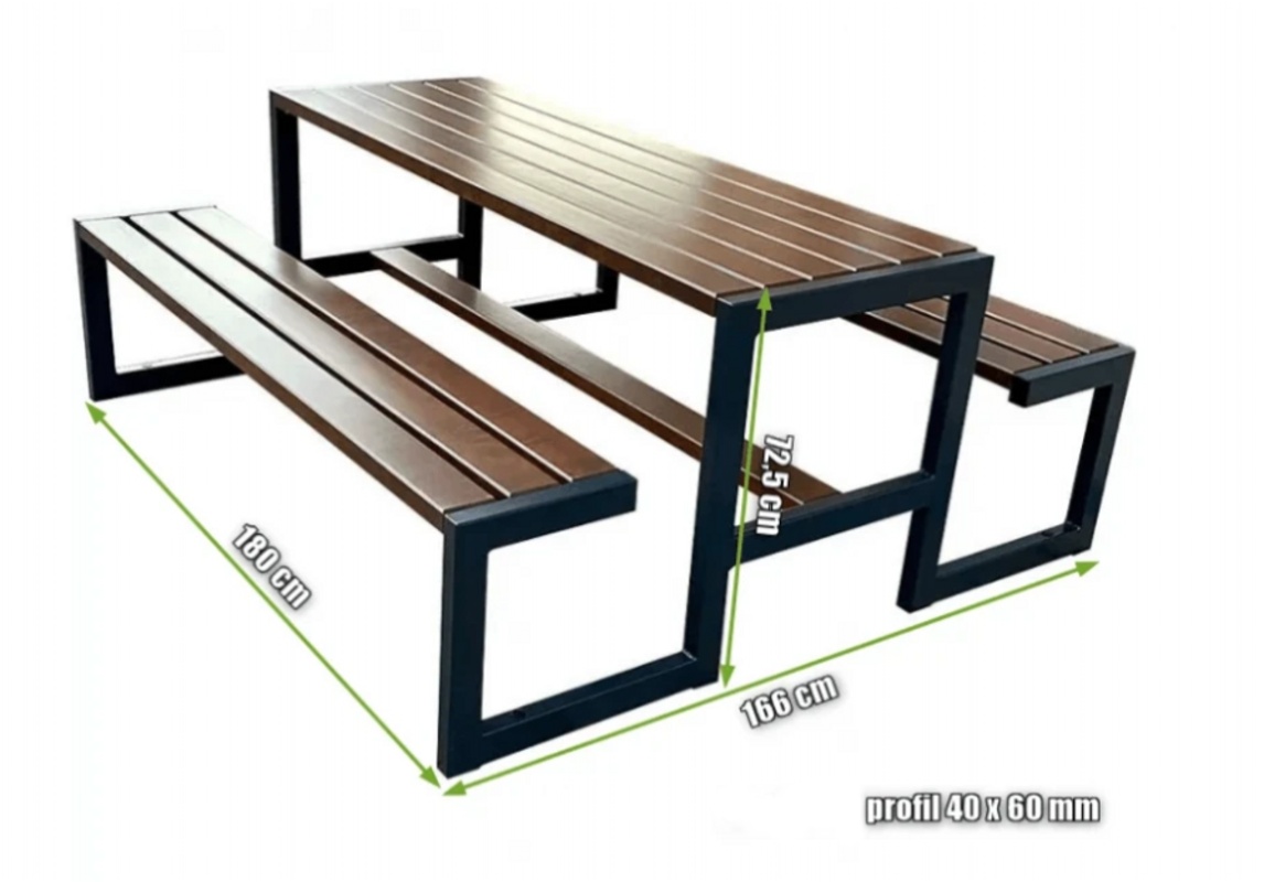 Moderní venkovní piknikový set z výběrového olšového dřeva je skvělou volbou pro vaše venkovní posezení. Set v odstínu ořech obsahuje stůl a dvě lavice, které jsou elegantně spojeny do pevného kusu nábytku. Ocelové prvky v grafitové barvě RAL 9021 dodávají sestavě moderní vzhled. Rozměry setu jsou 180 x 166 x 72,5 cm s ocelovým profilem 40 x 60 mm, což zajišťuje stabilitu a odolnost. Tento piknikový set kombinuje kvalitní olšové dřevo s ocelovými rámy pro dlouhotrvající funkčnost a estetiku. Důkladná příprava nábytku zajišťuje vysokou odolnost vůči povětrnostním podmínkám, což zaručuje jeho dlouhou životnost.