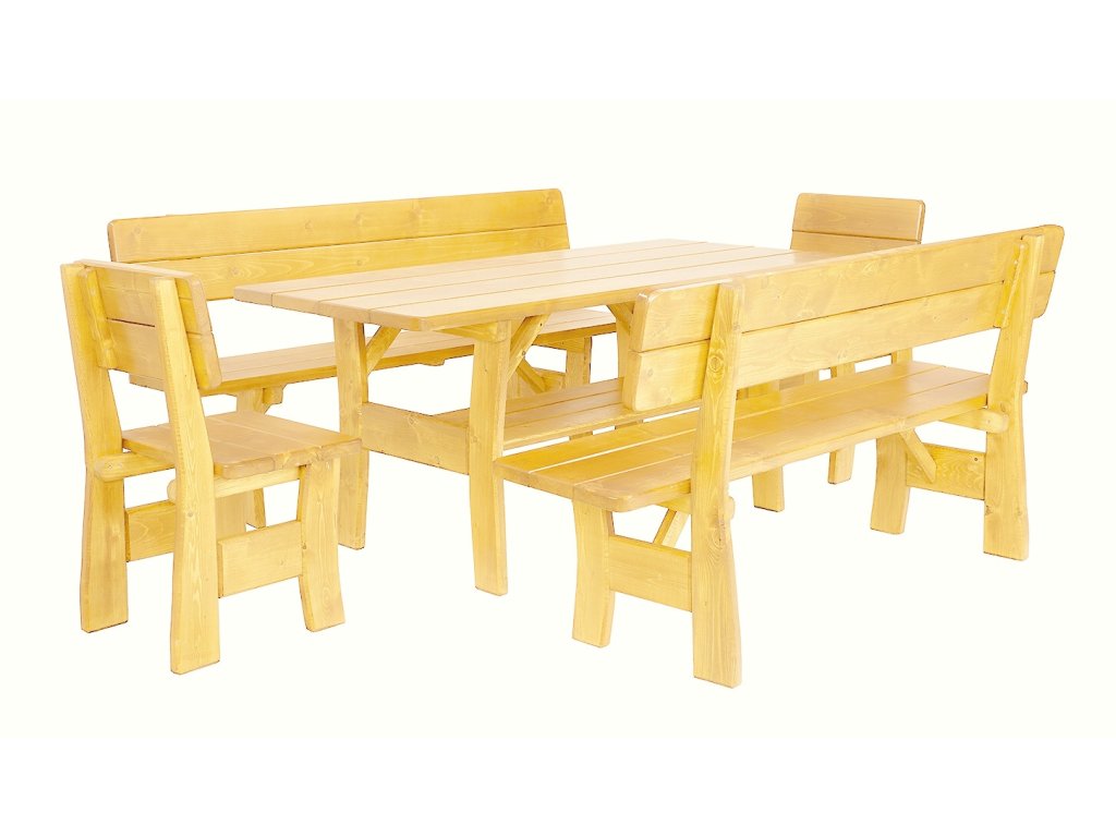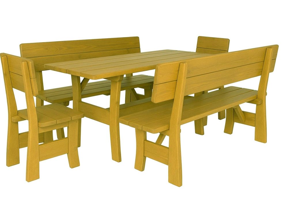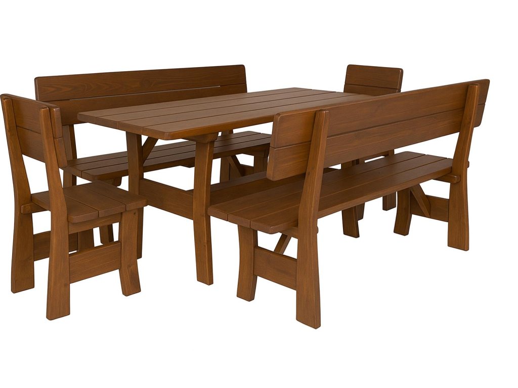 - Komponenty setu: 2 lavice, 2 židle, 1 stůl