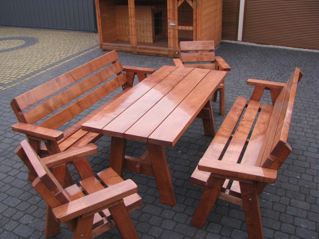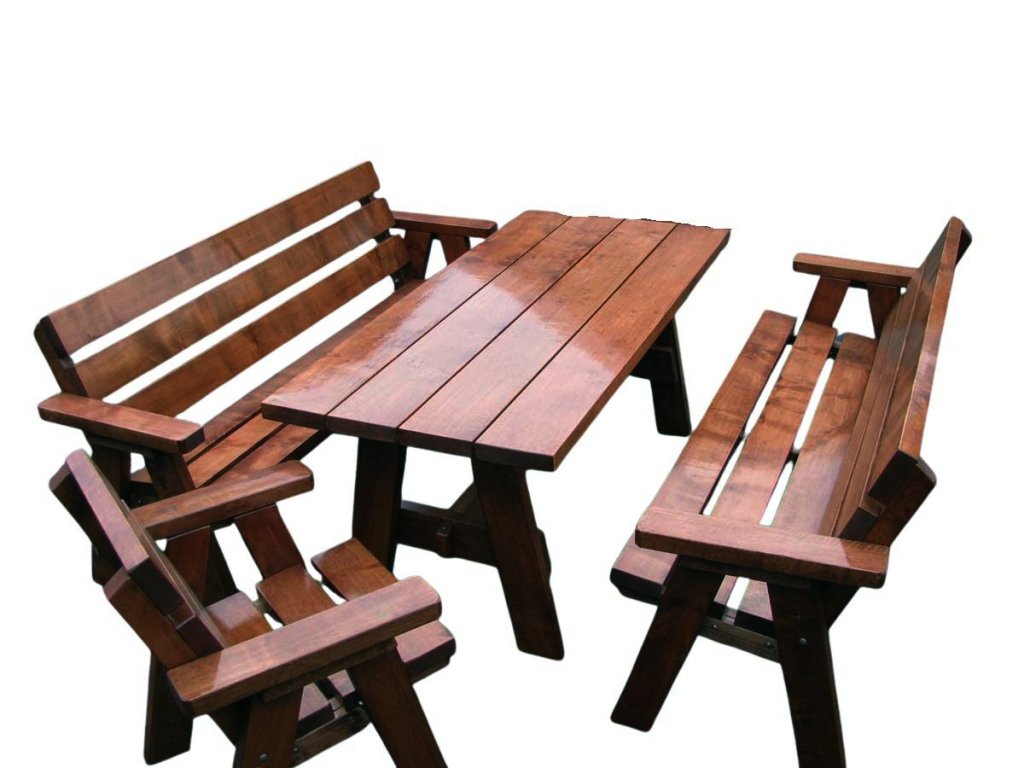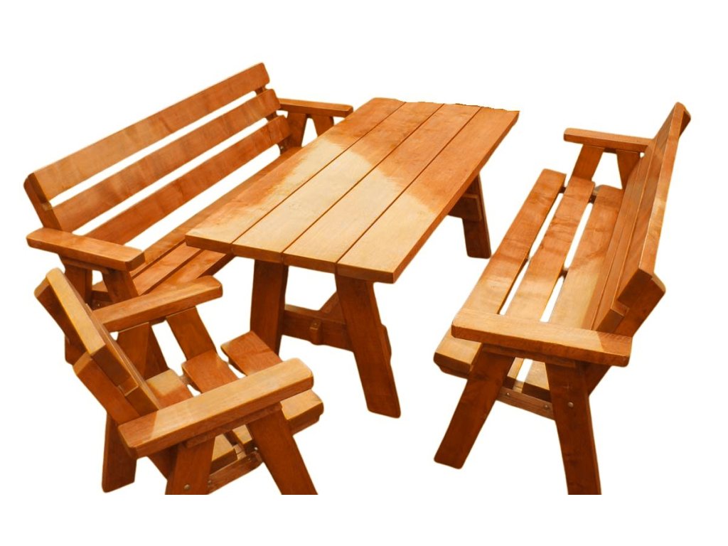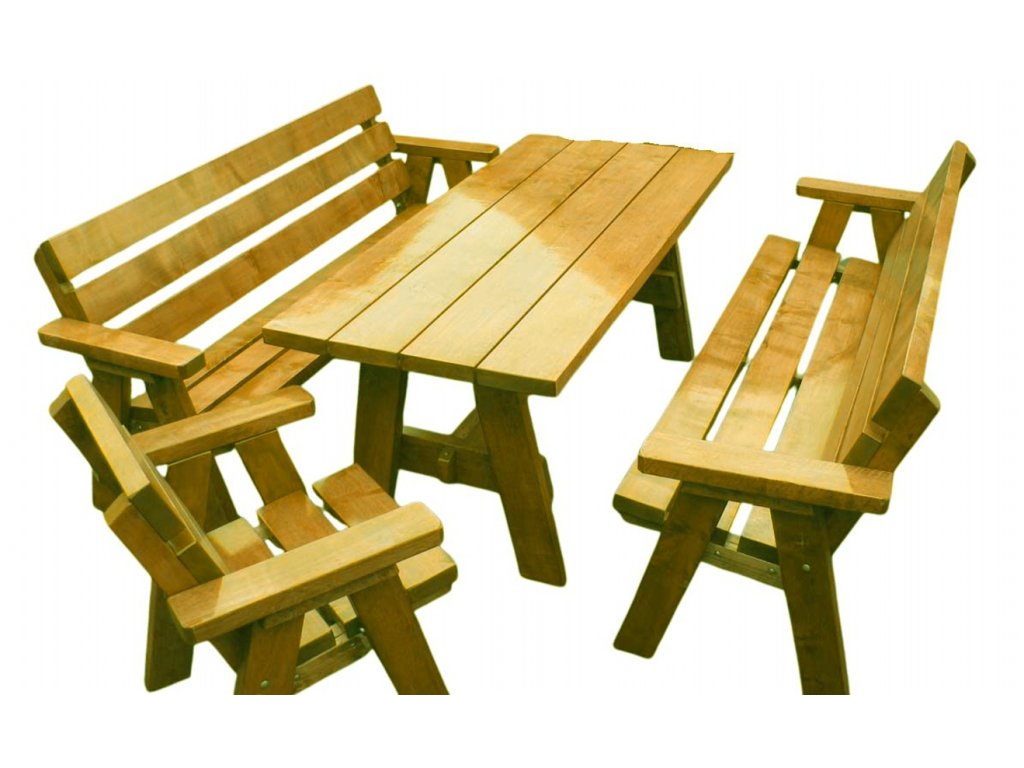 - sestava 1+2+2 – stůl, 2 lavice, 2 křesla