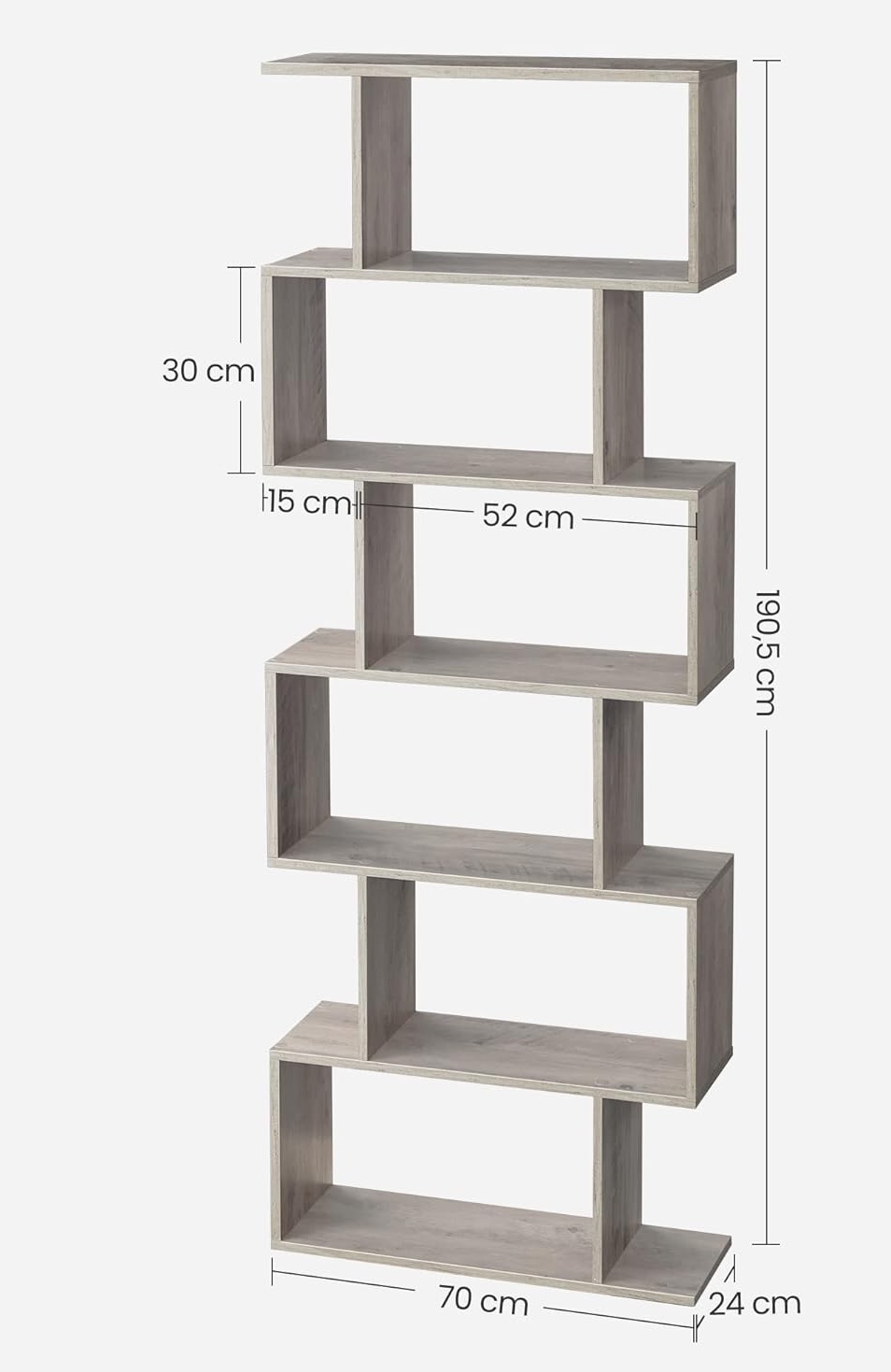 Stabilní konstrukce z kvalitního lamina zajišťuje dlouhou životnost a snadnou údržbu. Otevřené police poskytují dostatek prostoru pro knihy, květiny, rámečky s fotografiemi nebo stylové dekorace. Regál je vhodný do obývacího pokoje, pracovny, ložnice i kanceláře a lze jej využít také jako prostorový předěl.
