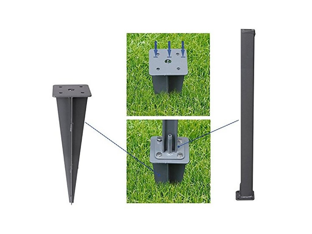 Horní montážní deska s předvrtanými otvory umožňuje jednoduché přišroubování sloupku podle potřeby. Odolné kovové provedení je vhodné pro venkovní použití a dlouhodobé zatížení.