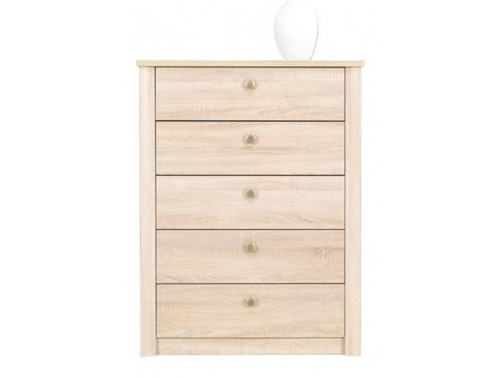 Komoda Finezja F5 zaujme svým moderním designem, praktickým řešením a kvalitním zpracováním. Tato komoda je součástí nábytkové řady Finezja, která je známá jednoduchými tvary, nadčasovým vzhledem a originálními barvami, díky nimž snadno vytvoříte stylový interiér přesně podle vašich představ. Vyrobena je z odolné laminované dřevotřísky s pevnými ABS hranami a uzavřenou zadní stěnou ze sololitu. Skvěle se hodí do obývacího pokoje, ložnice, předsíně nebo pracovny. K dispozici ve dvou oblíbených dekorech – dub sonoma a dub sonoma čokoládový.