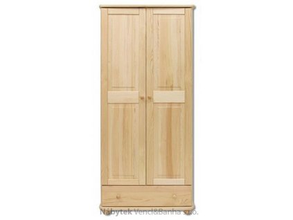 Stylová šatní skříň z masivního borovicového dřeva o rozměrech 85 x 190 x 60 cm, s frézovanými dvířky a praktickým vnitřním uspořádáním pro ramínka a šuplíky. Povrchová úprava...