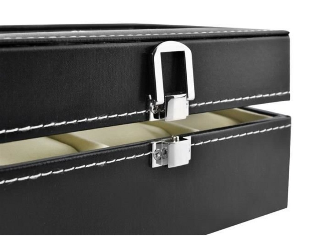 Stylový organizér na hodinky je praktickým i elegantním doplňkem pro každého milovníka hodinek. Nabízí 3 samostatné přihrádky s měkkými polštářky, které udrží hodinky bezpečně uložené a chráněné před poškrábáním, prachem i vlhkostí.