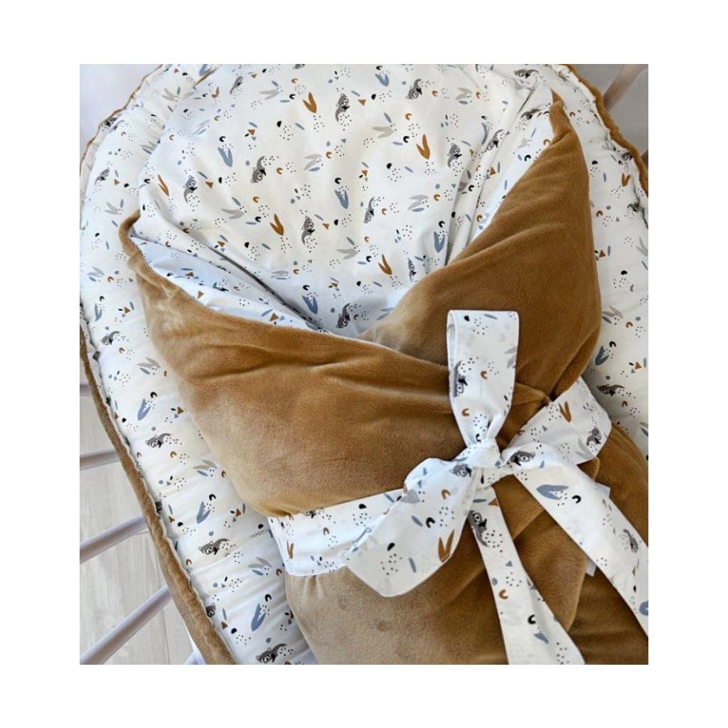 Hebká péřová zavinovačka Mýval zajistí miminku pocit bezpečí, tepla a pohodlí. Jemný lesní motiv s mývalem a měkoučký minky materiál jsou ideální pro novorozence i kojence.