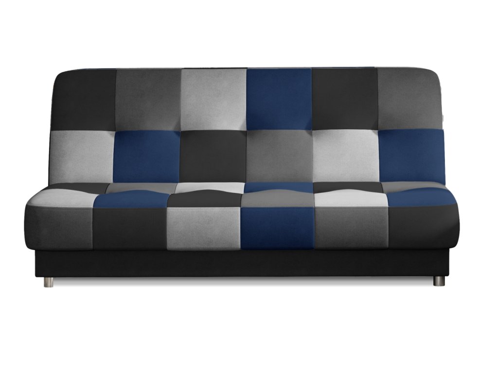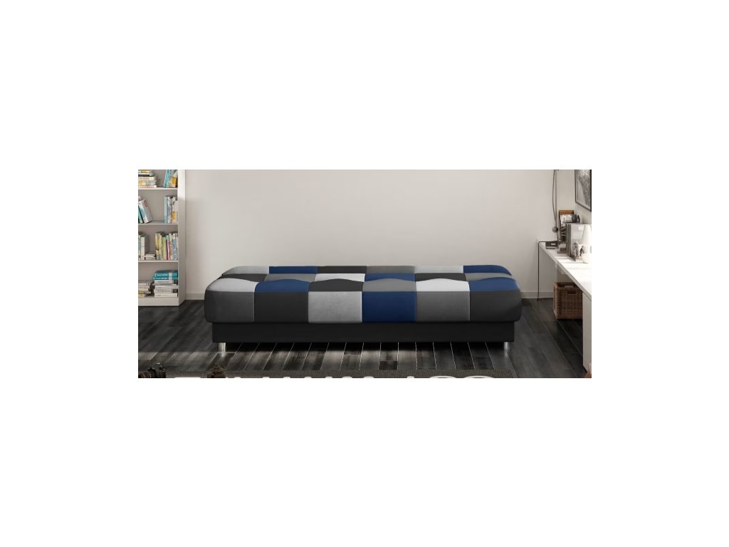 Pohovka Cayo rozkládací s úložným prostorem – Soro 100 / Soro 93 – modro-šedý patchwork skladem