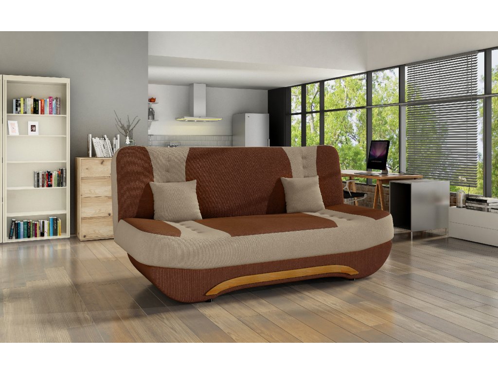 Pohovka EWA II v atraktivní hnědo-béžové kombinaci Alova 12 / Alova 07 je skvělou volbou do bytů, pokojů pro hosty i studentských místností. Díky komfortní konstrukci nabízí pohodlné sezení, praktickou funkci rozkladu a také prostorný úložný prostor na lůžkoviny či sezónní textilie.