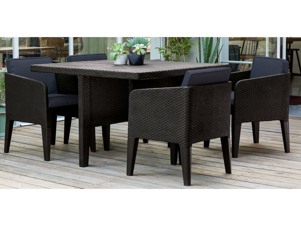 Zahradní sada Columbia 5 se vyznačuje mimořádně moderním a elegantním designem inspirovaným přírodním ratanem. Ideální pro venkovní posezení a relaxaci.