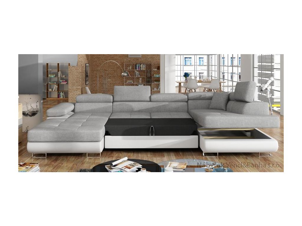 Rohová sedací souprava Rodrigo nabízí moderní design, maximální pohodlí a výjimečnou funkčnost. Je ideální volbou pro interiéry ve stylu glamour nebo minimalismu. Svým uspořádáním do tvaru písmene U poskytuje dostatek prostoru pro odpočinek, zatímco jemné detaily, jako chromované kovové nohy a stylové prošití sedadel, dodávají nábytku exkluzivní vzhled. Kombinace dvou barevných odstínů umožňuje snadné sladění s ostatním vybavením místnosti.