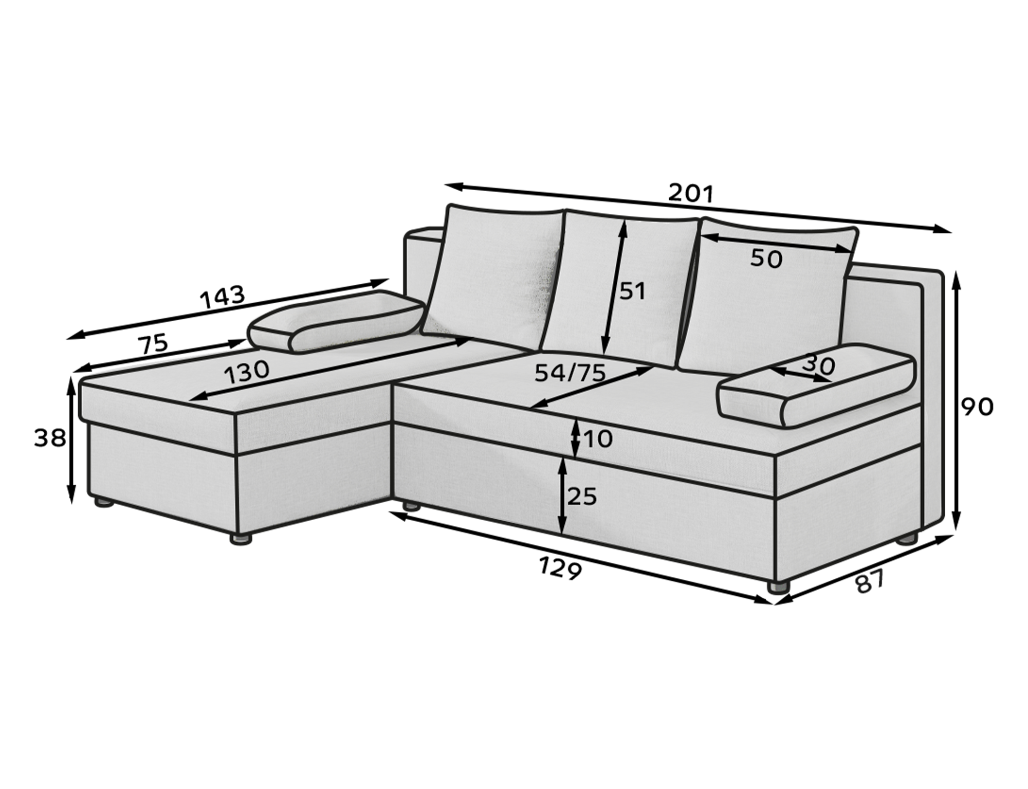 - Hloubka sedu: 54 / 75 cm (s polštáři / bez polštářů)