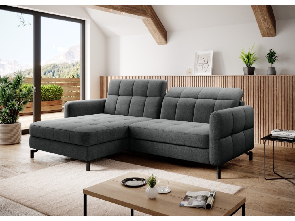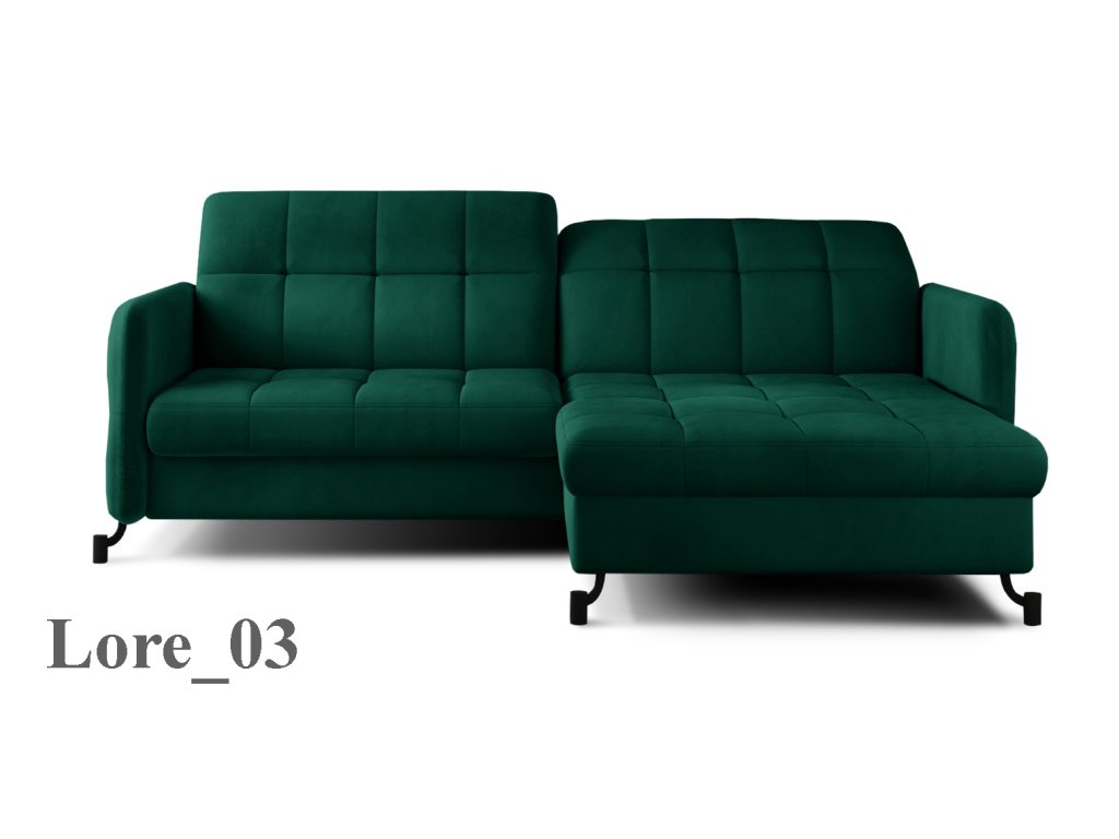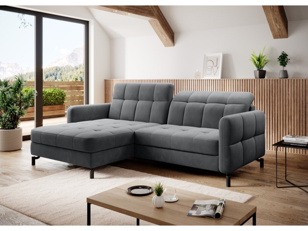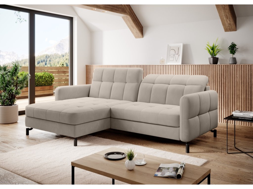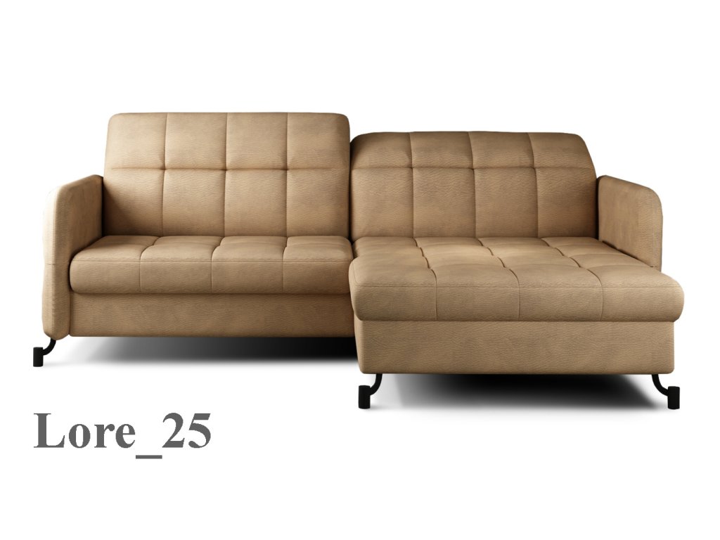 Rozkládací rohová sedačka Lorelle je ideální volbou pro ty, kteří hledají kombinaci moderního designu, praktičnosti a maximálního komfortu. Elegantní prošívání, pevné opěrky a vyšší kovové nohy dodávají sedačce lehký a nadčasový vzhled, který se snadno sladí s různými styly interiéru.