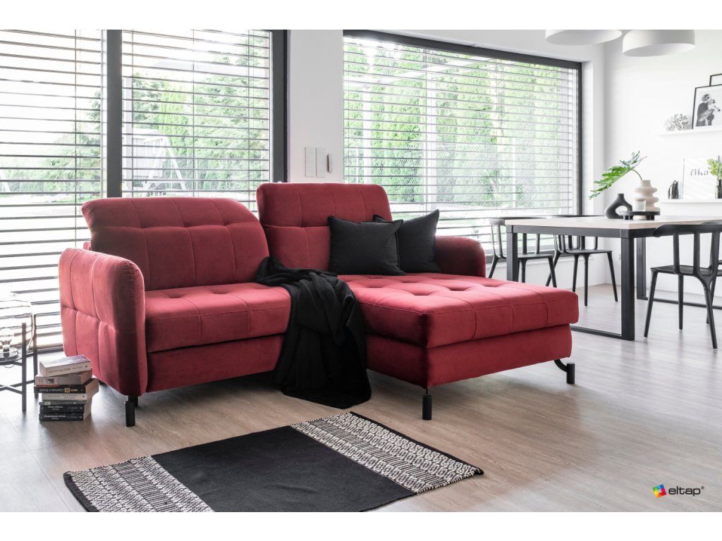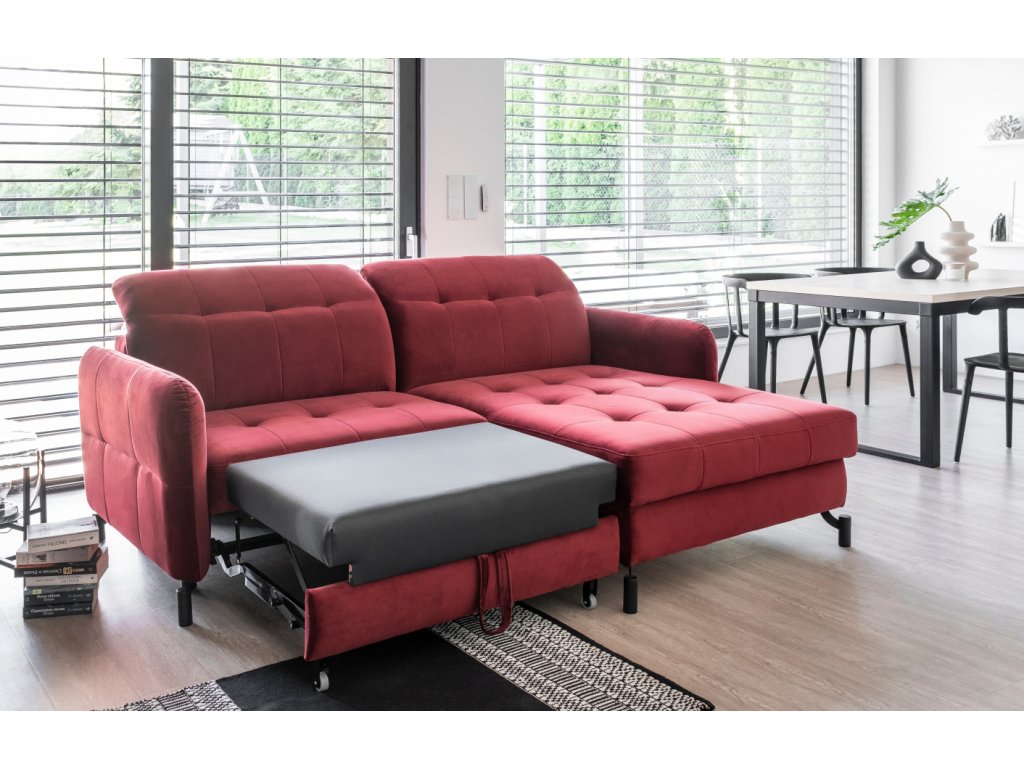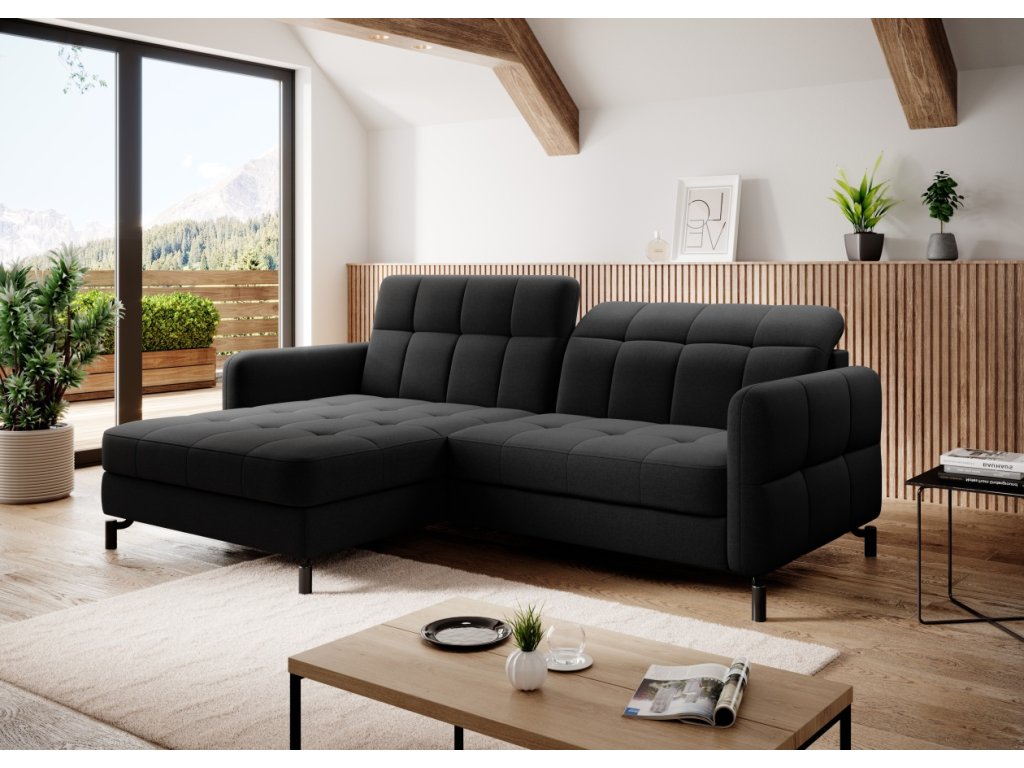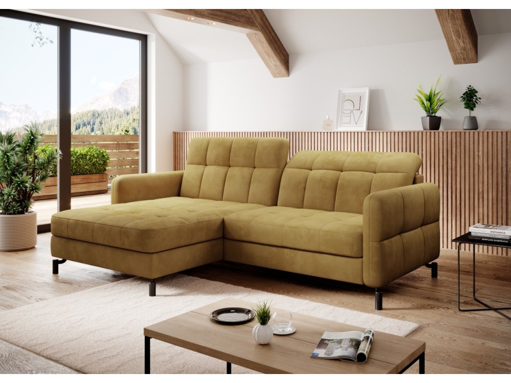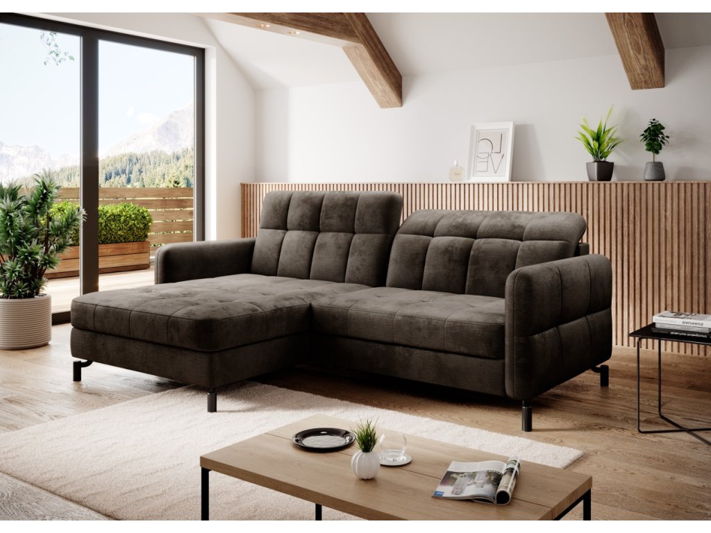 Rozkládací rohová sedačka Lorelle je ideální volbou pro ty, kteří hledají kombinaci moderního designu, praktičnosti a maximálního komfortu. Elegantní prošívání, pevné opěrky a vyšší kovové nohy dodávají sedačce lehký a nadčasový vzhled, který se snadno sladí s různými styly interiéru.