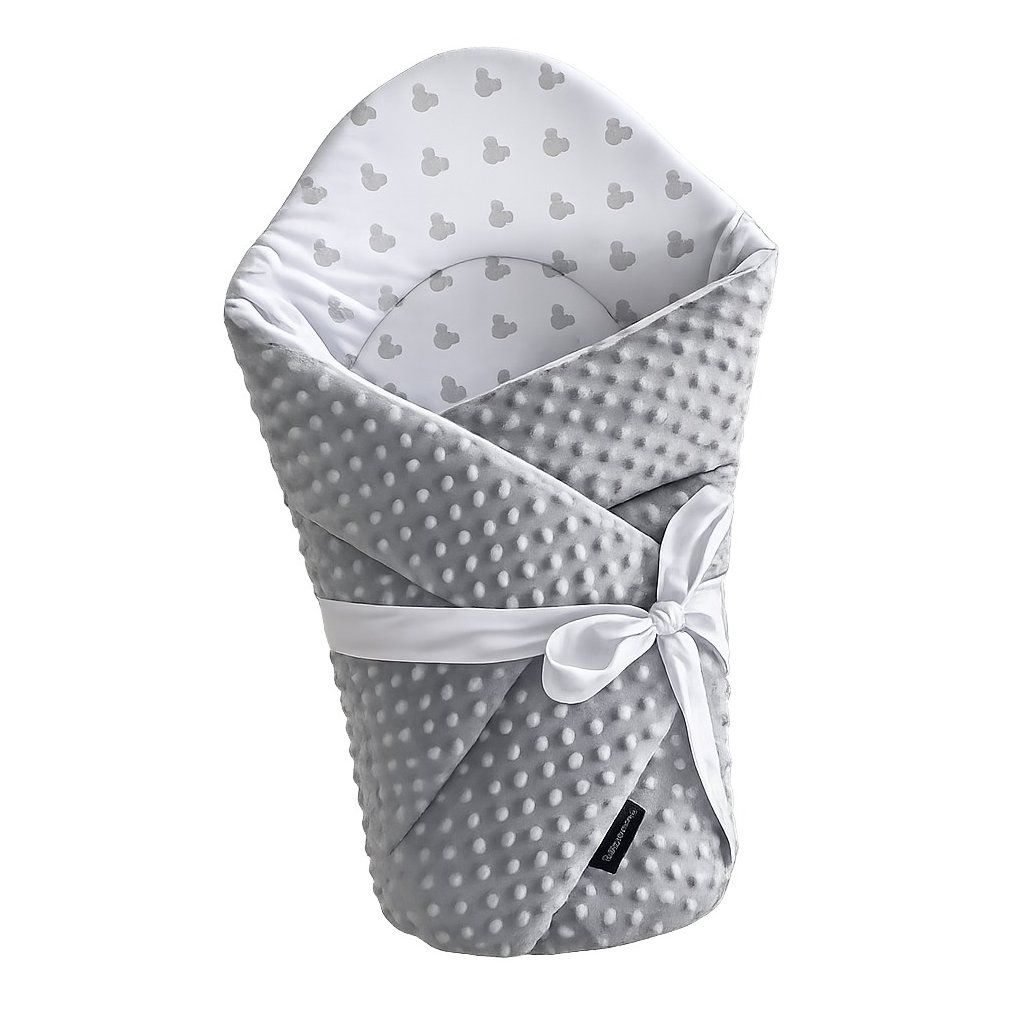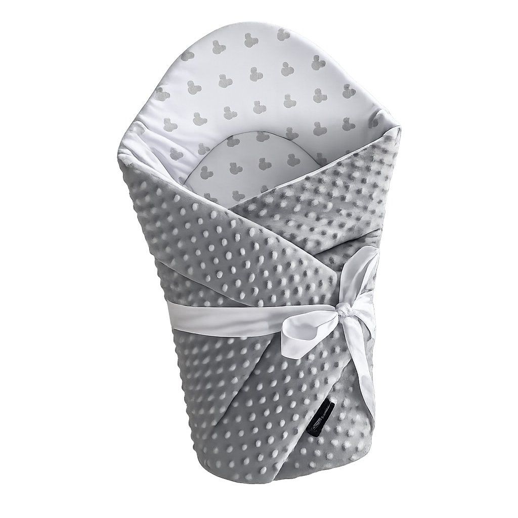 Měkká rychlozavinovačka Minky v šedé barvě s jemným motivem Mickey. Poskytuje miminku pohodlí, teplo a pocit bezpečí od narození.