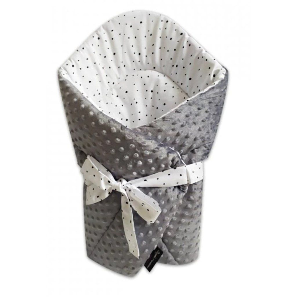 Měkká rychlozavinovačka Minky v elegantní šedé barvě s jemným puntíkovaným vzorem. Poskytuje miminku pohodlí, teplo a pocit bezpečí od prvních dnů života.