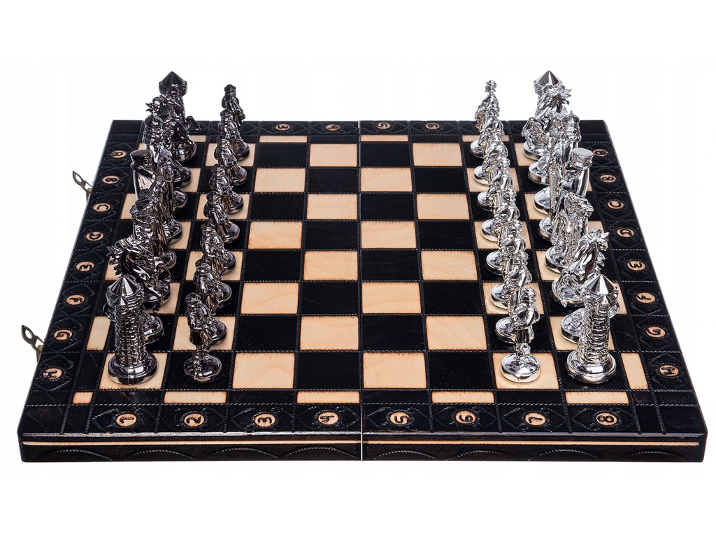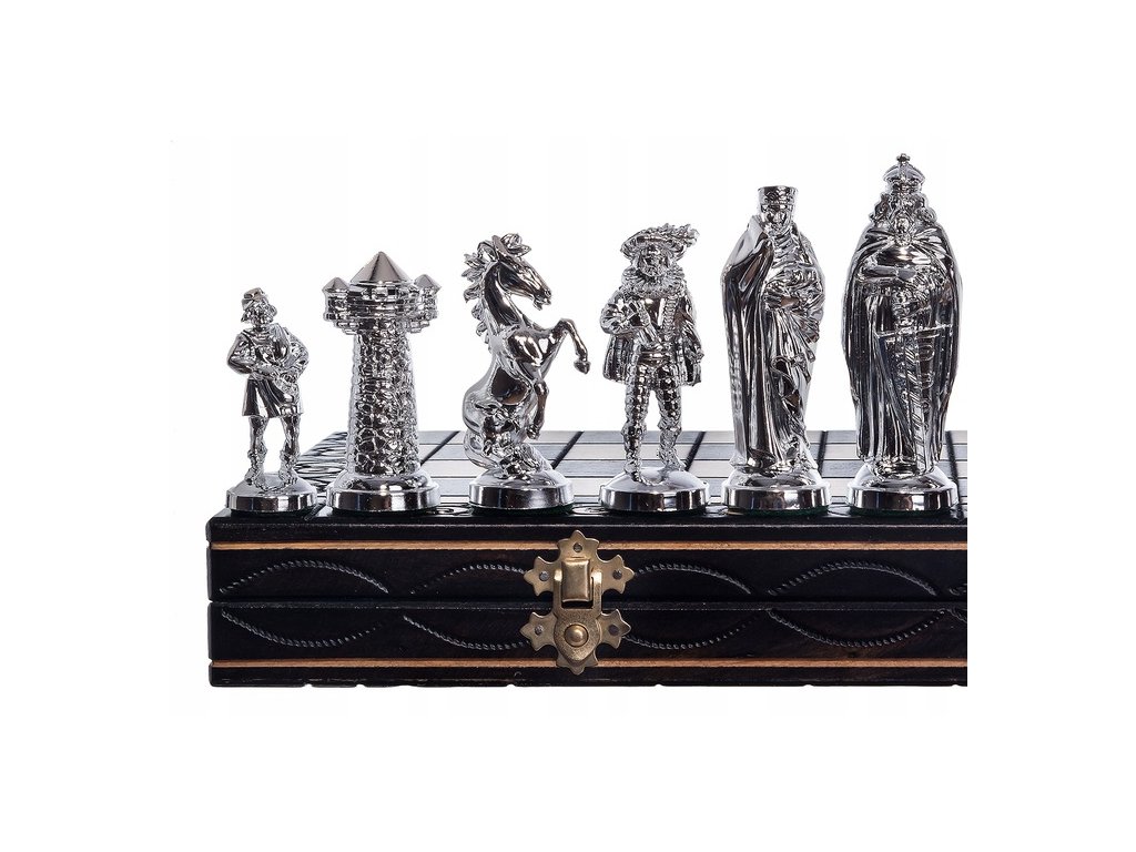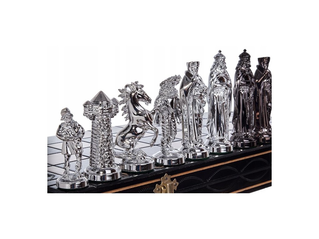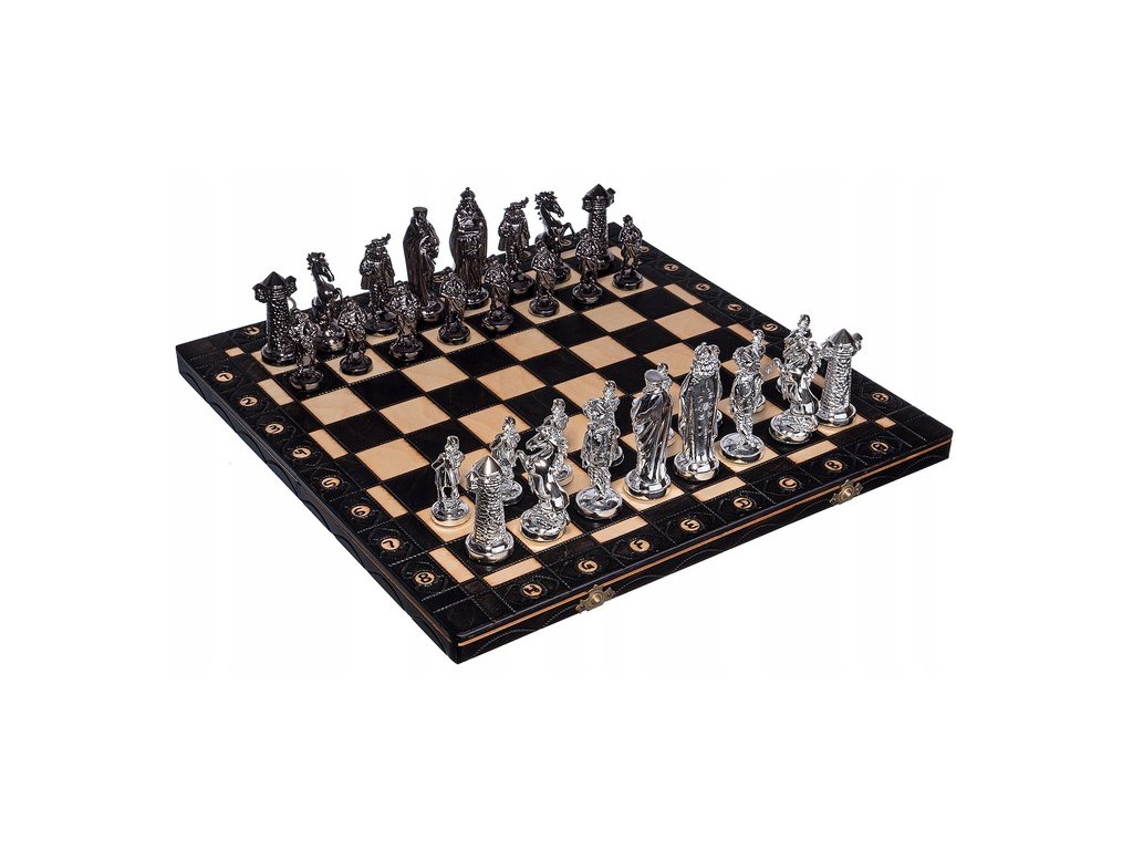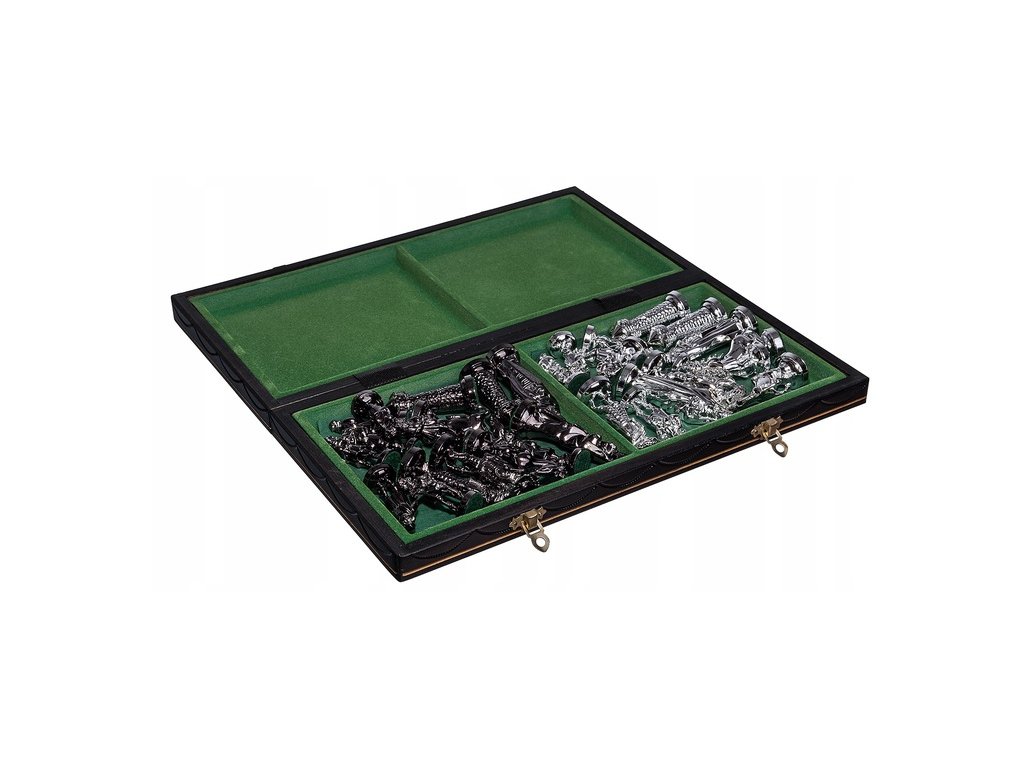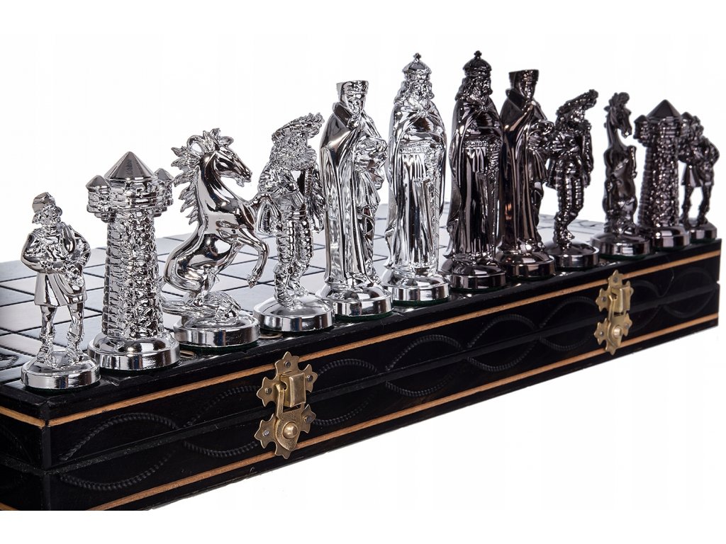 Šachy STREDOVĚKÉ se stříbrnými a černými metalizovanými figurkami