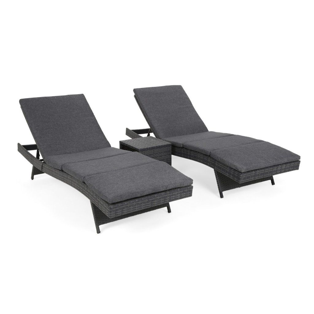 Sada zahradních lehátek Bora Grey / Grey Melange se stolkem – 2x polohovací lehátko | technoratan | stolek | šedá sada