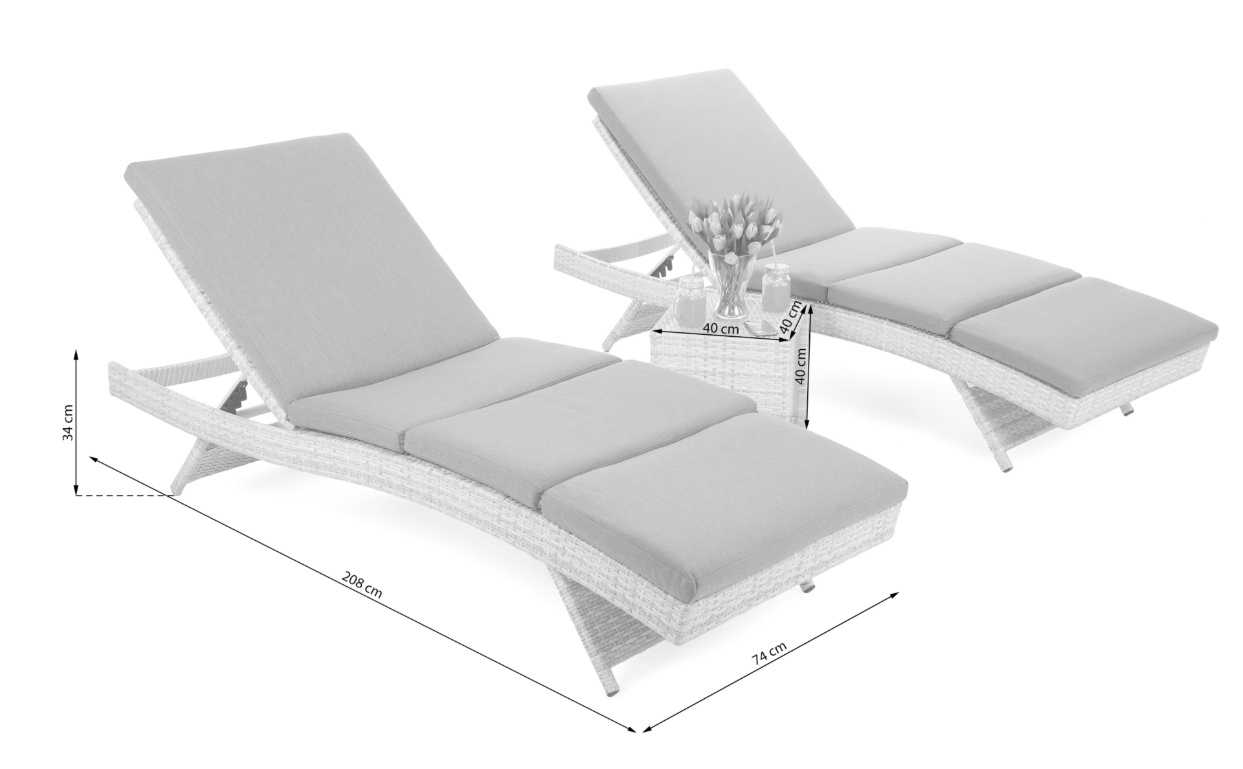 Praktický stolek mezi lehátky poskytuje místo pro odložení nápojů, knihy nebo drobností. Konstrukce je pevná a stabilní, vyrobená z kvalitního technoratanu odolného vůči UV záření i běžným povětrnostním podmínkám.