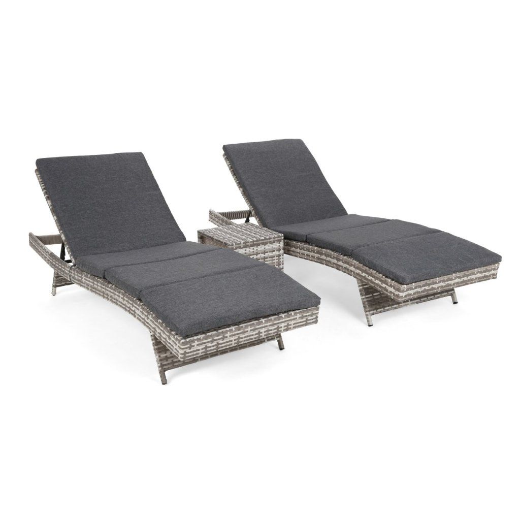 Sada zahradních lehátek Bora světle šedá / šedá melanž se stolkem – 2x polohovací lehátko | 6 poloh | technoratan | stolek