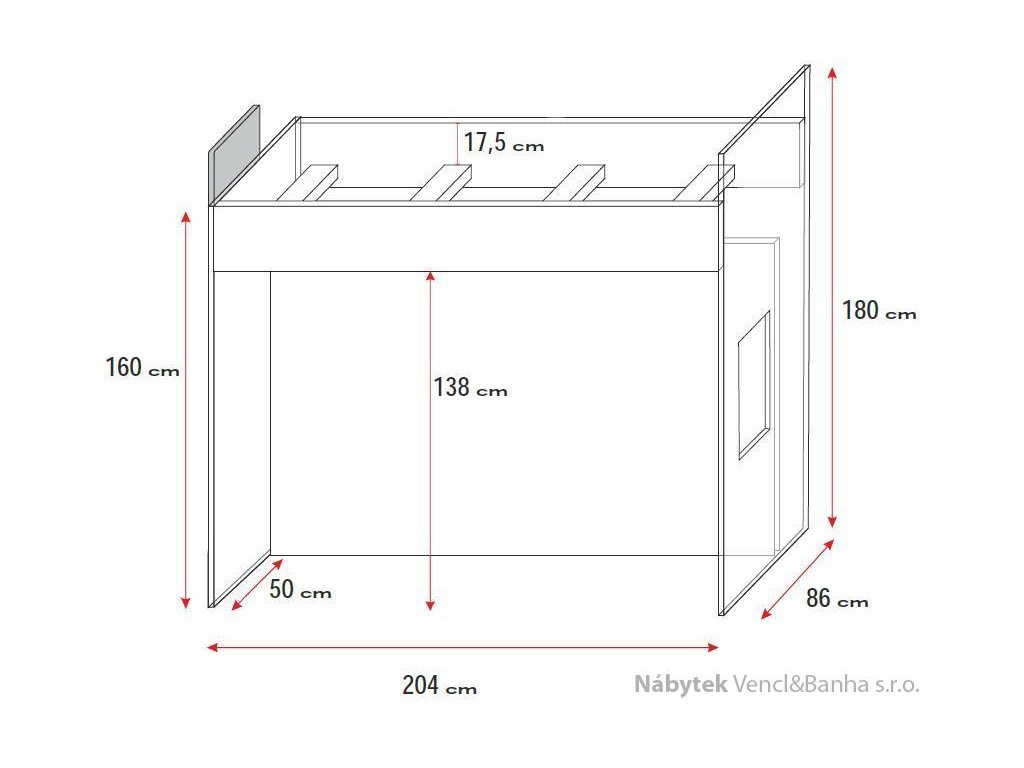 - Rozměry patrové postele vxšxh 160/180x204x86 cm,