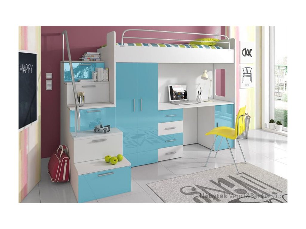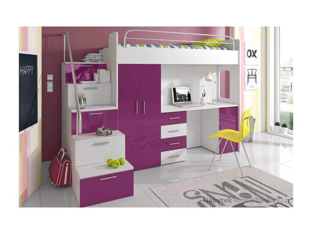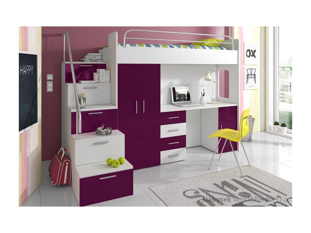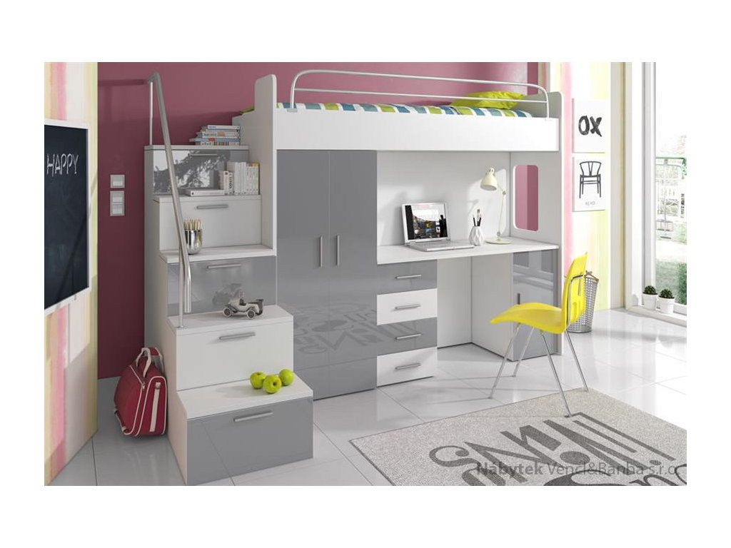 sestava nábytku moderní patrová postel z dřevotřísky Raj 4S karol