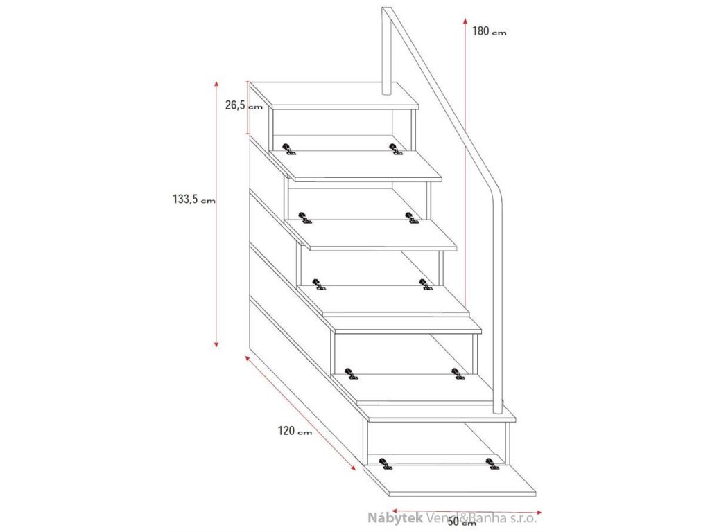 - skřínky ve schodech mají rozměr šxvxh 120x133,5/180x50 cm.