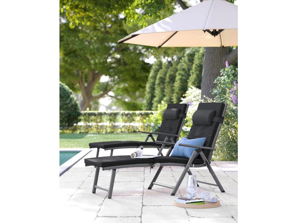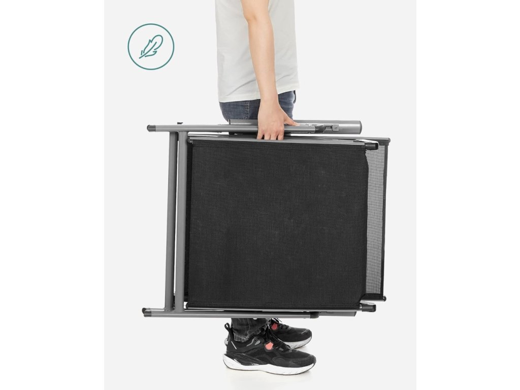 Stabilní kovová konstrukce zajišťuje pevnost a dlouhou životnost, zatímco skládací mechanismus umožňuje snadné uskladnění a přenášení. Moderní černé provedení působí elegantně a snadno se kombinuje s ostatním zahradním nábytkem.