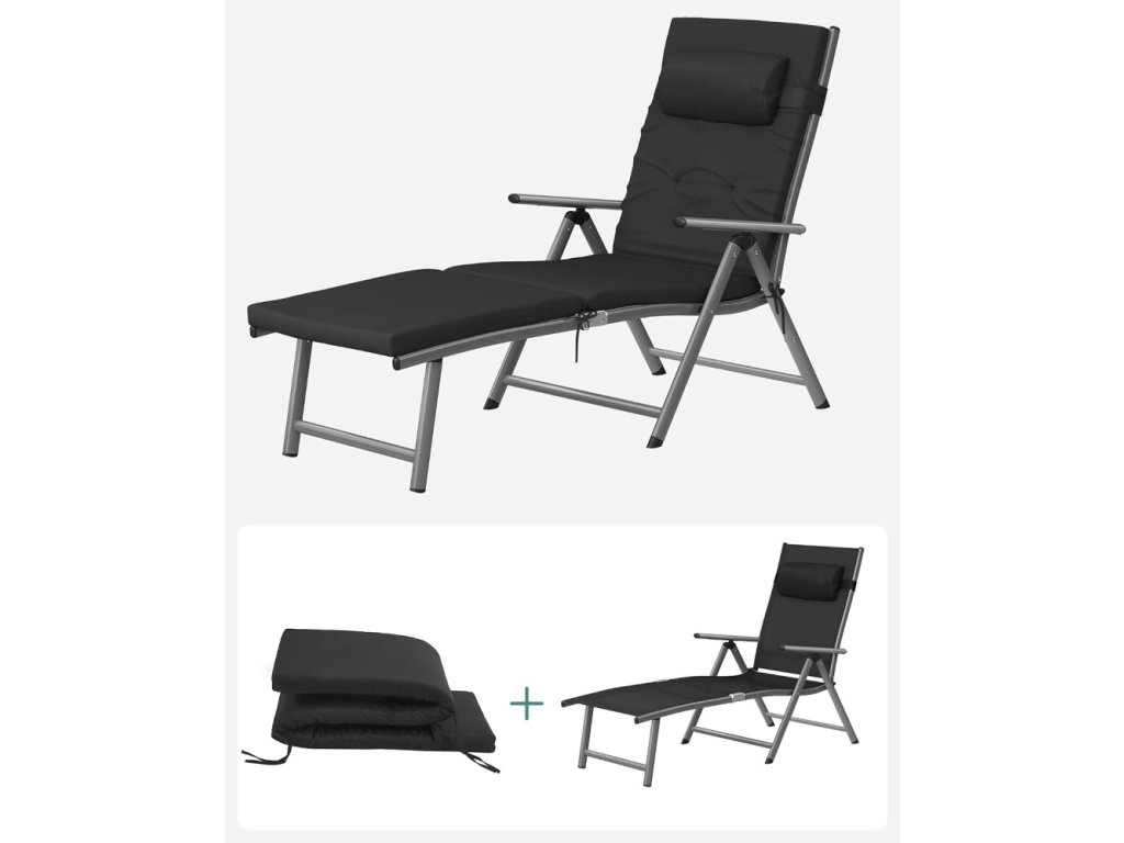 Skládací lehátko s matrací 6 cm – polohovací, černé